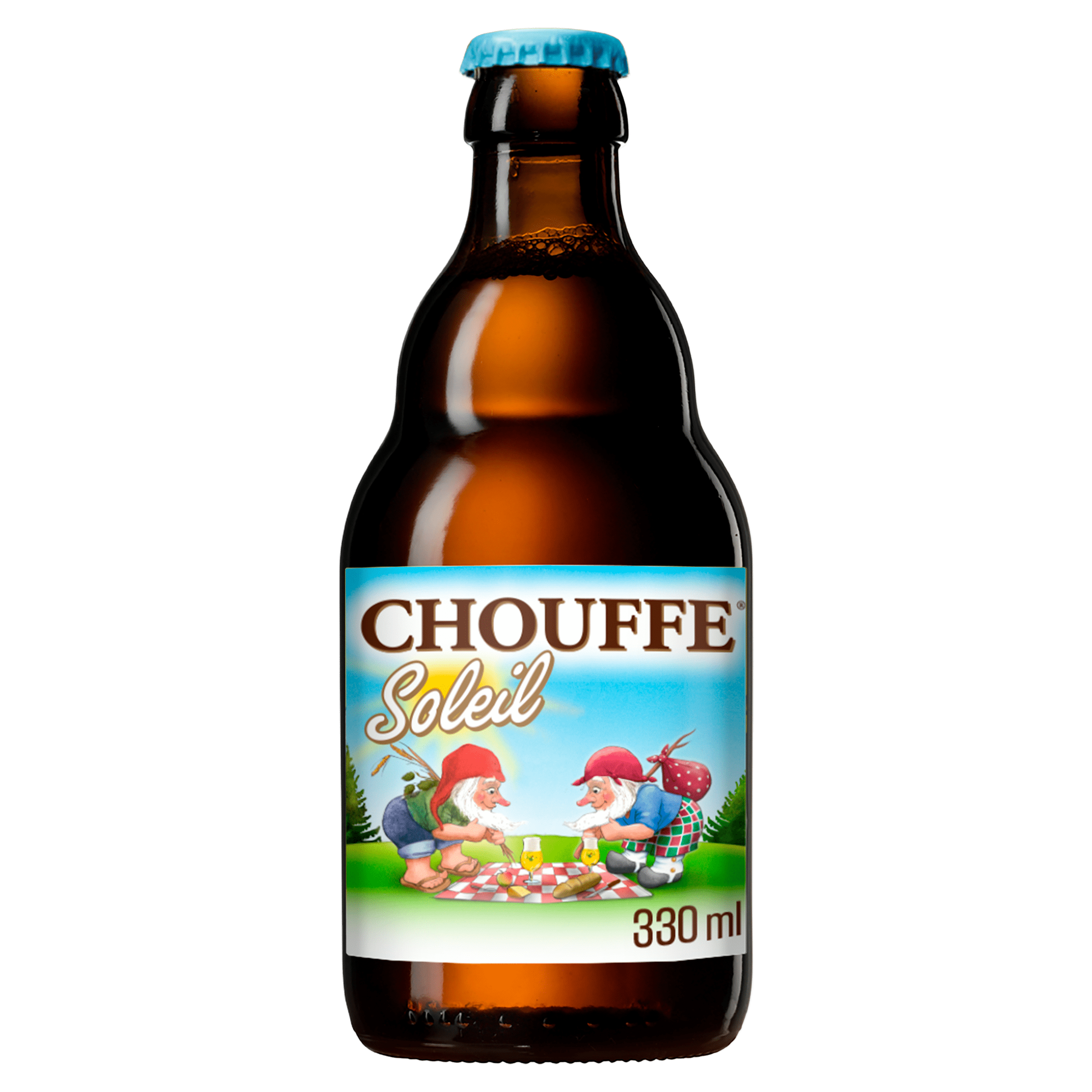 Chouffe Soleil is een verfrissend blond seizoensbier met fruitige smaken, perfect om de eerste zonnige lentedagen te vieren. Met een alcoholpercentage van 6% is dit soepel en subtiel bier ideaal als verfrissing tijdens zomerse dagen. Dit blonde speciaalbier past geweldig bij kipgerechten, gerookte zalm en diverse groenten zoals radijs, tomaat, bloemkool en witlof.
