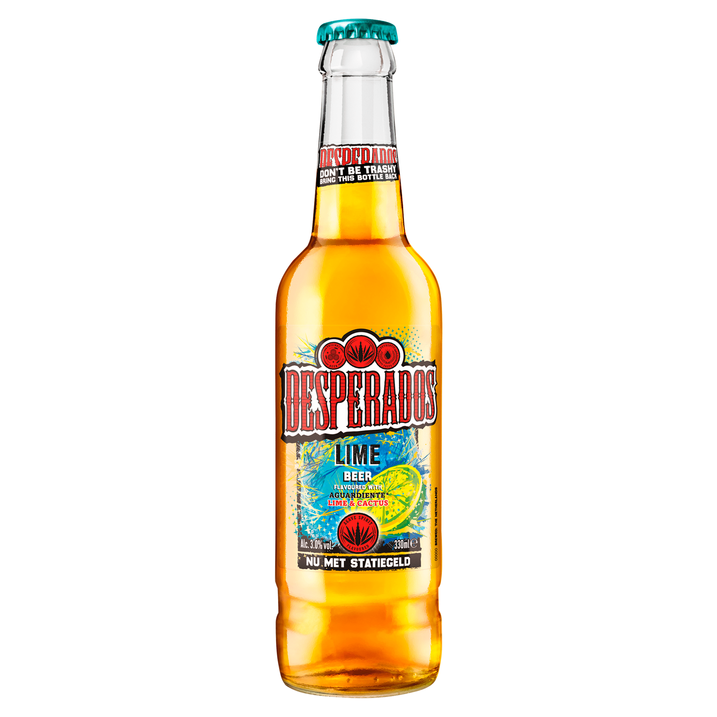 Desperados Lime is het ultieme partybier met een verfrissende kick! Dit bier heeft een alcoholpercentage van 3,0% en is verrijkt met de smaken van limoen en cactus. Perfect voor een warme zomerdag of een tuinfeestje met vrienden. Geniet van de frisse smaak en laat je verrassen door de unieke combinatie van smaken. Vergeet niet: drank met mate en alleen voor volwassenen!
