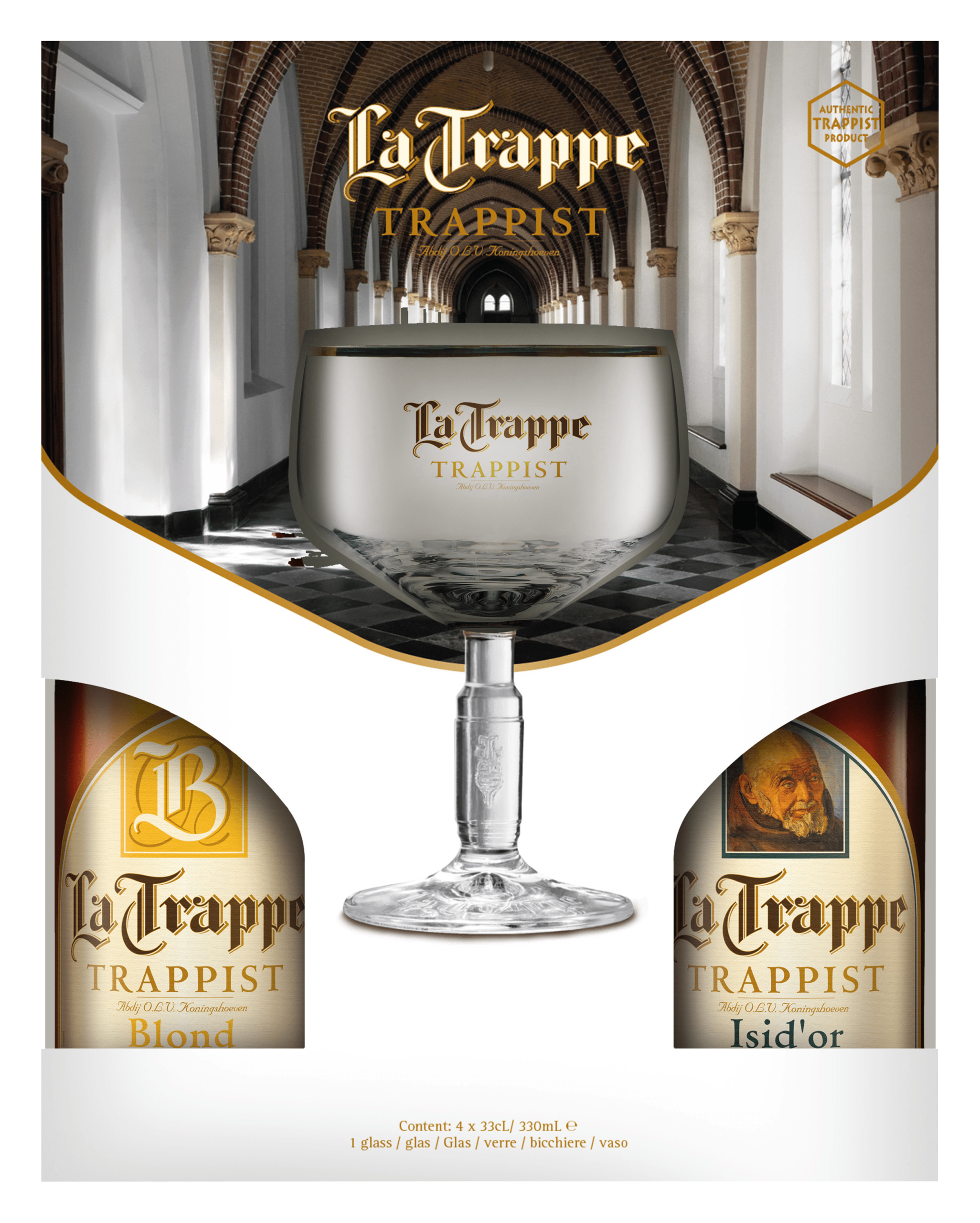 La Trappe 4x33cl + glas Dubbel, Tripel, Quadrupe – Plus