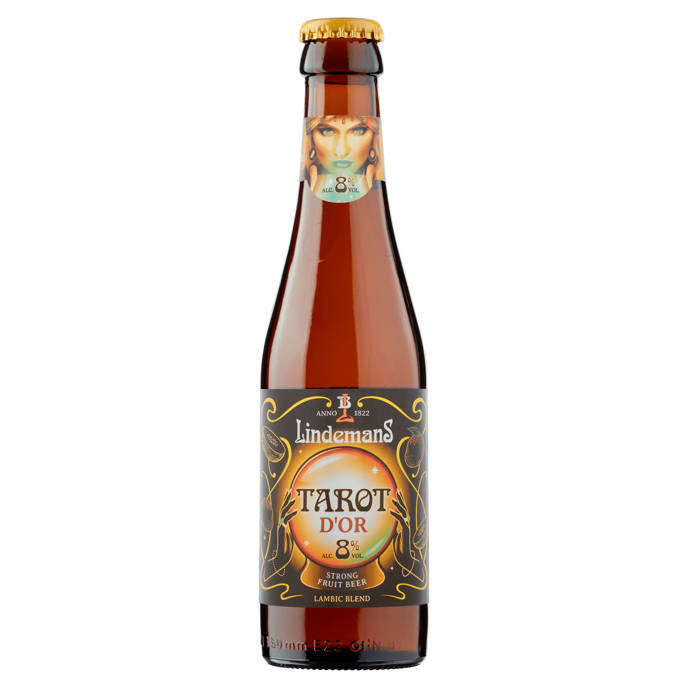 Lindemans Tarot D’Or is een uniek fruitbier met een verfijnde blend van hogegistingsbier en lambiek, verrijkt met een exotische mix van smaken zoals honingmeloen, mango en limoen. Met een alcoholpercentage van 8% biedt dit bier een soepele en subtiele smaakervaring die perfect is voor een verfrissend moment. Ideaal om te schenken op een temperatuur van 2-3°C.