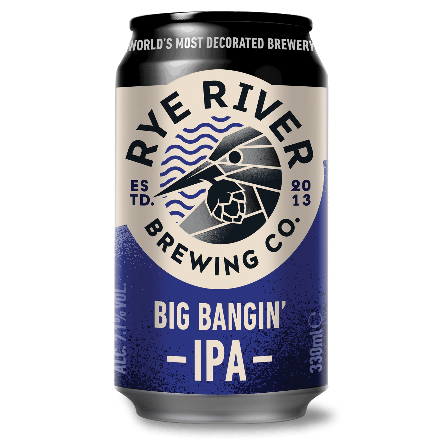 Geniet van de krachtige en unieke smaak van Rye River Big Bangin IPA. Dit Amerikaanse stijl IPA heeft een heerlijk bitter randje en is rijk aan zoete mouttonen, aangevuld met verfrissende citrusnoten en een hint van grapefruit door de aromatische hopsoorten. Perfect voor een BBQ of bij een smakelijke hamburger.