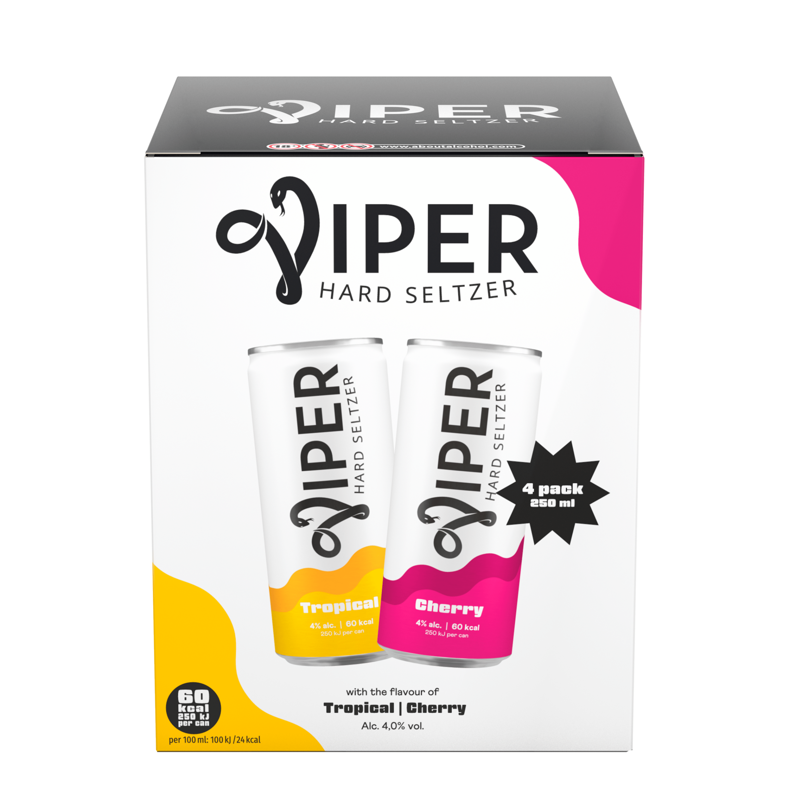 Geniet van de verfrissende smaken van de Viper Variety Pack, bestaande uit twee heerlijke varianten: Tropical en Cherry. Deze koolzuurhoudende alcoholische dranken zijn perfect om te delen of om zelf van te genieten. Met een alcoholpercentage van 4% zijn ze ideaal voor een feestelijke avond. Bewaar ze koel voor de beste smaakervaring!
