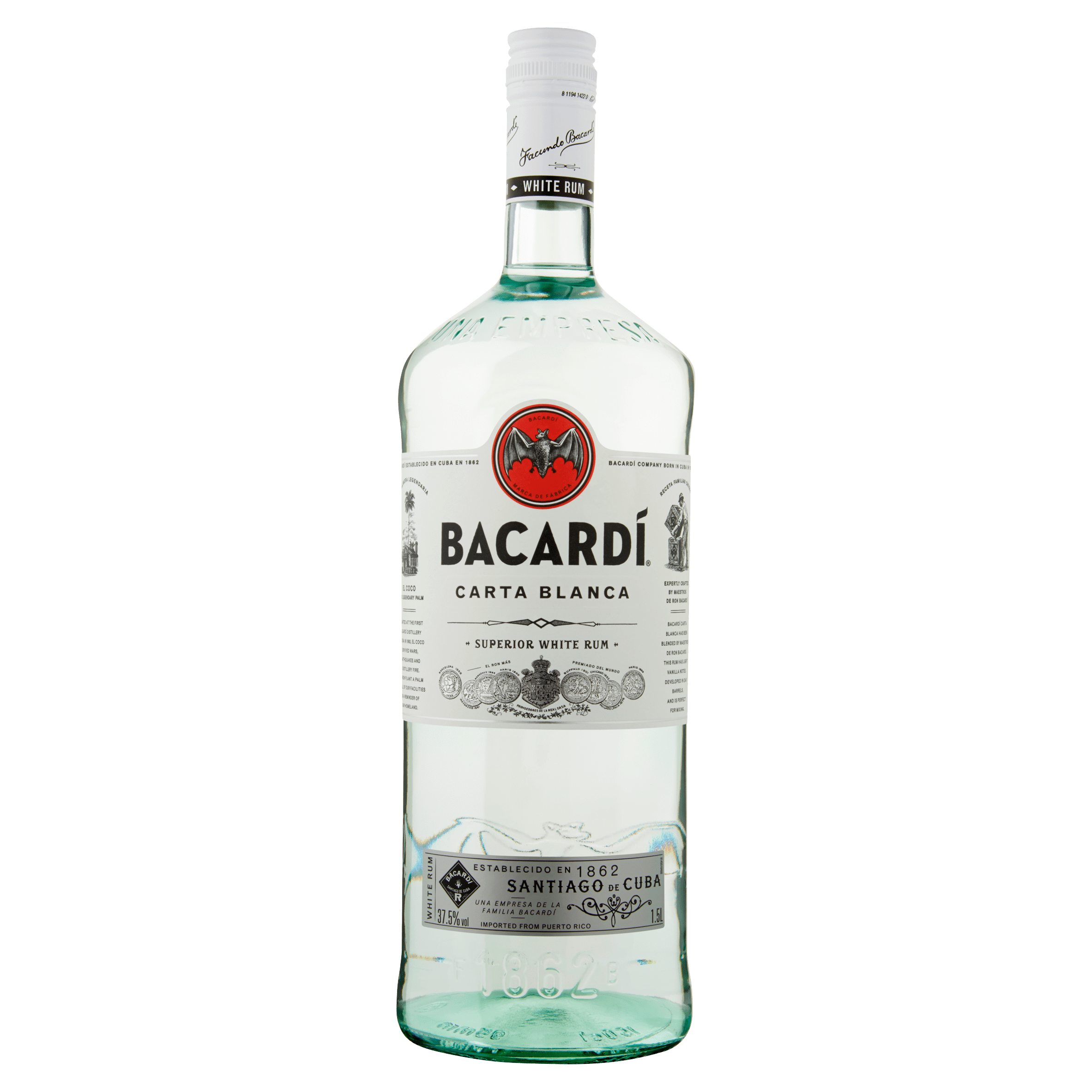 BACARDÍ Carta Blanca is een lichte en aromatische witte rum, ideale basis voor heerlijke cocktails zoals Mojito en Daiquiri. Ontwikkeld in 1862 door Don Facundo Bacardí, deze wereldwijd bekroonde rum heeft onderscheidende tonen van vanille en amandel, gerijpt in eikenhouten vaten. Geniet verantwoord!