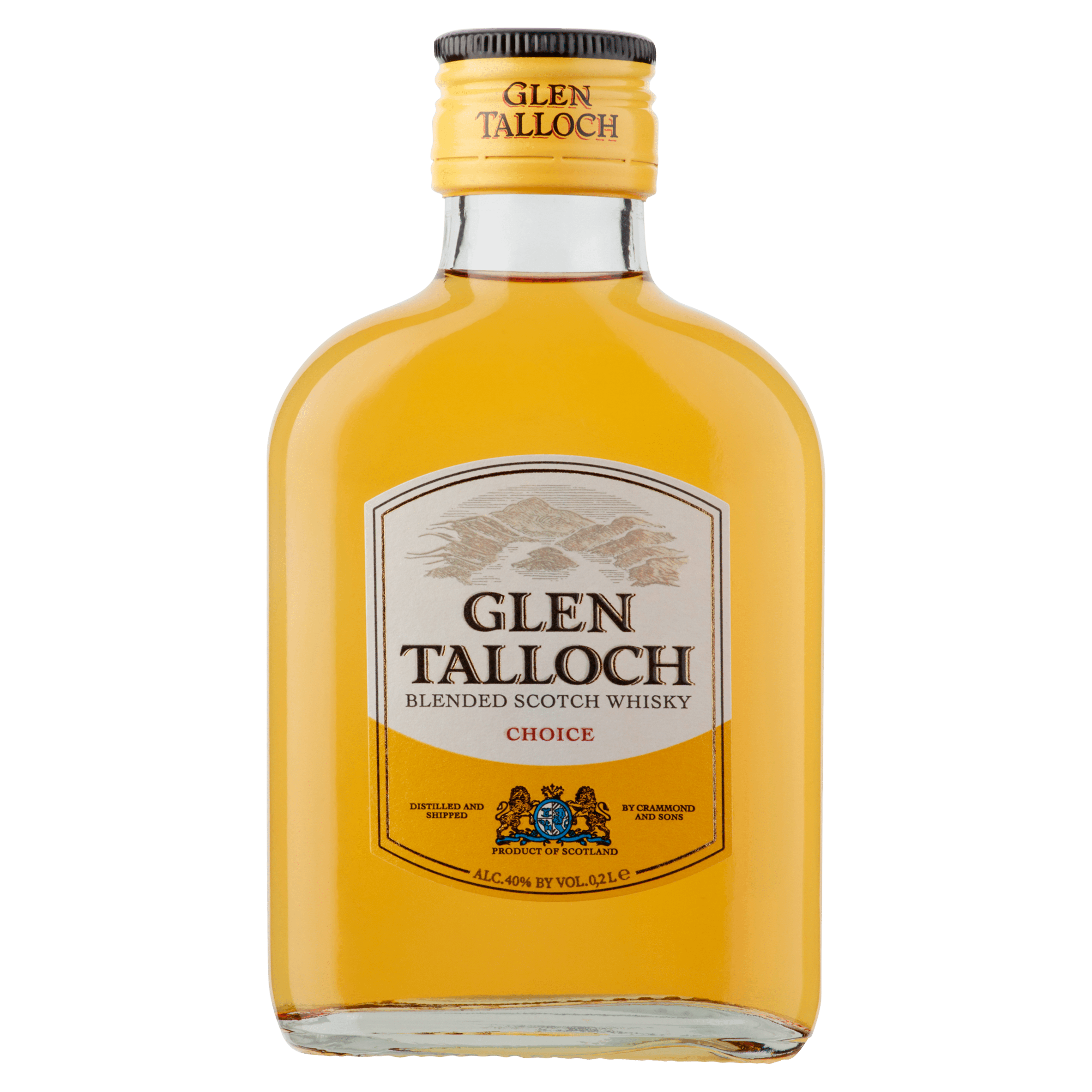 Geniet van de verfijnde smaak van Glen Talloch Whisky, een zeer oude schotse whisky, vakkundig gedistilleerd en verzonden door Crammond & Sons in Airdrie, Schotland. Met een alcoholpercentage van 40% biedt deze whisky een rijke en complexe smaakervaring. Perfect voor de echte whisky-liefhebber.