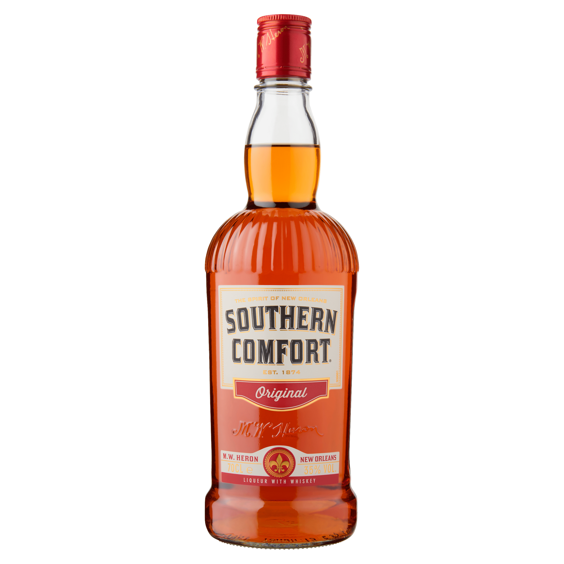 Southern Comfort is een heerlijke, gearomatiseerde likeur met een rijke whiskeyachtige smaak. Met een alcoholpercentage van 35% is deze likeur perfect voor het maken van cocktails of om puur van te genieten. Bewaar het verantwoord en vergeet niet dat het alcoholconsumptie kan belemmeren bij zwangerschap. Drink met mate.
