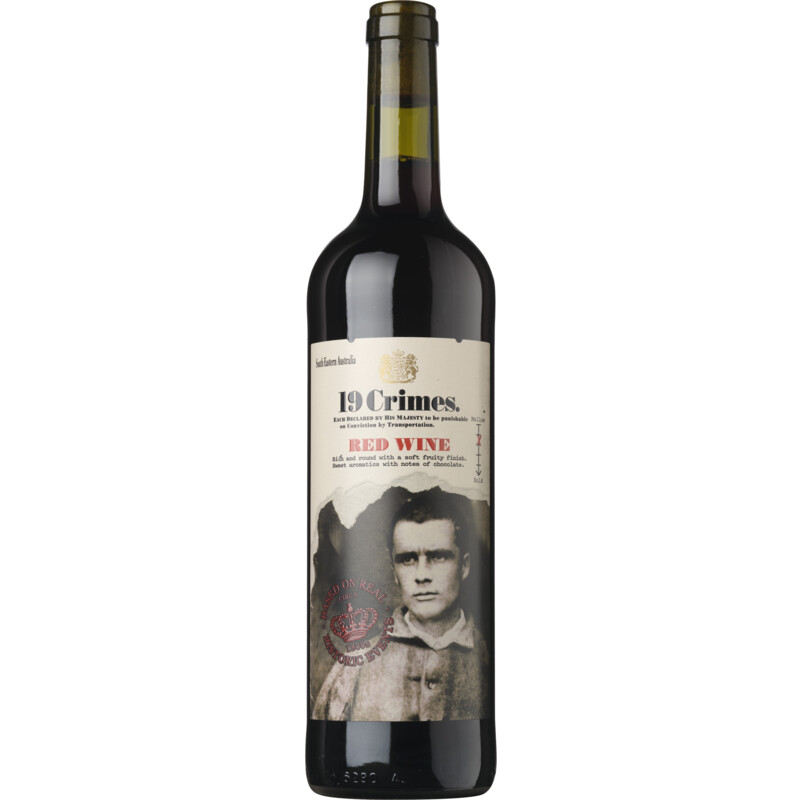 Maak kennis met de 19 Crimes Red Blend, een krachtige en kruidige wijn die je meeneemt op een reis naar de geschiedenis van Australië. Gemaakt van een blend van de druivenrassen shiraz, grenache en mourvèdre, biedt deze wijn een rijke smaakervaring met de tonen van donkerpaarse bosvruchtenjam en een subtiele rokerigheid. Dit is niet zomaar een wijn, het is een eerbetoon aan de kolonisten die destijds naar Australië werden gedeporteerd. Geniet van de stoere smaak bij gegrild vlees of een hartige stoofschotel en laat je verrassen door deze authentieke Australische creatie.