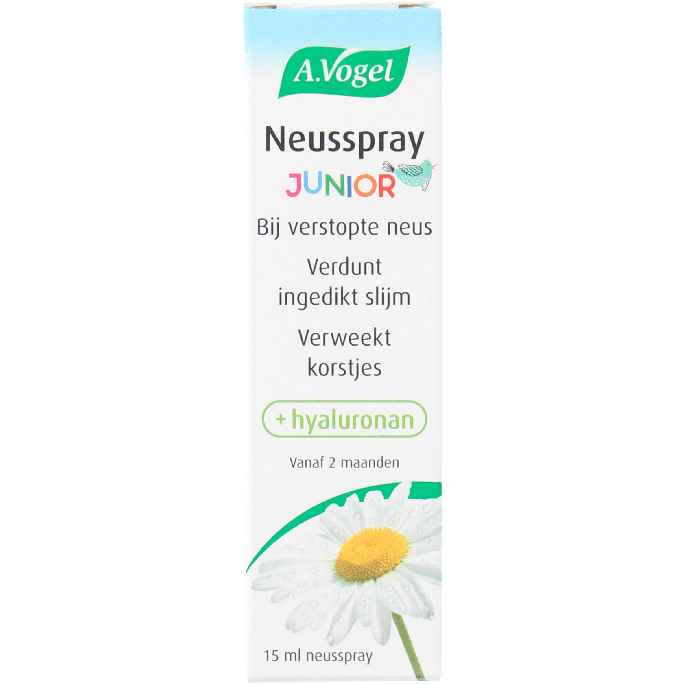 De A. Vogel Neusspray Junior is speciaal ontwikkeld voor jonge kinderen met een snotneus. Deze neusspray bevat 100% natuurlijke ingrediënten, zoals hyaluronan en echte kamille, en is vrij van conserveringsmiddelen. Het verlicht de symptomen van een verstopte neus op een veilige en effectieve manier. Gebruik deze spray eenvoudig door de flacon rechtop te houden en tijdens het sprayen te schudden. Ideaal voor gebruik bij kleine, kwetsbare neusen!