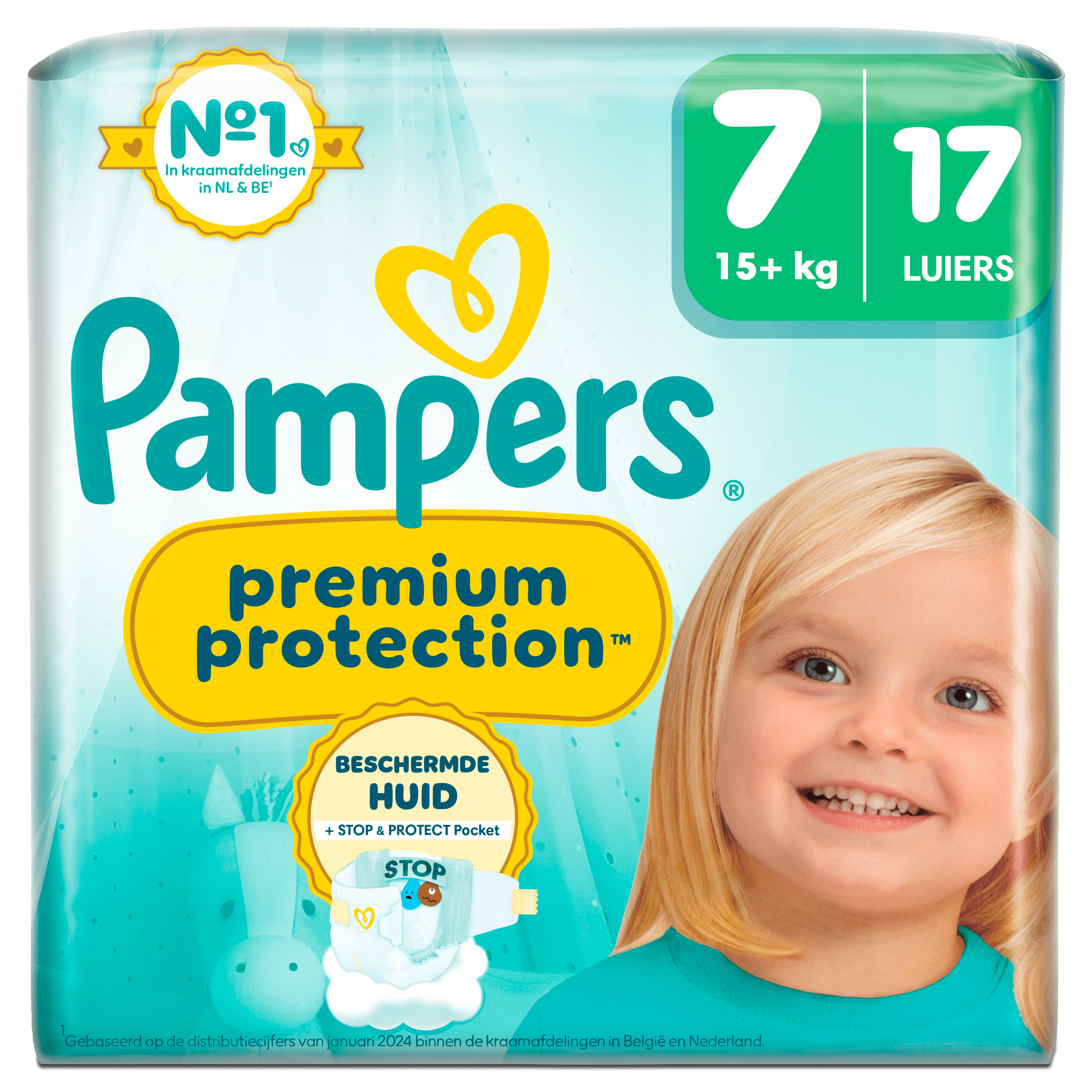 Pampers Premium Protection S7 Key Size biedt dubbele bescherming voor de gevoelige huid van je baby met onmiddellijke absorptie en een innovatieve Stop & Protect pocket die lekken voorkomt. Deze luiers zijn dermatologisch getest, gemaakt van ultrazachte materialen en bevatten geen EU-parfumallergenen. De N°1 keuze van kraamafdelingen in Nederland – ideaal voor de comfortabele verzorging van je kleintje.