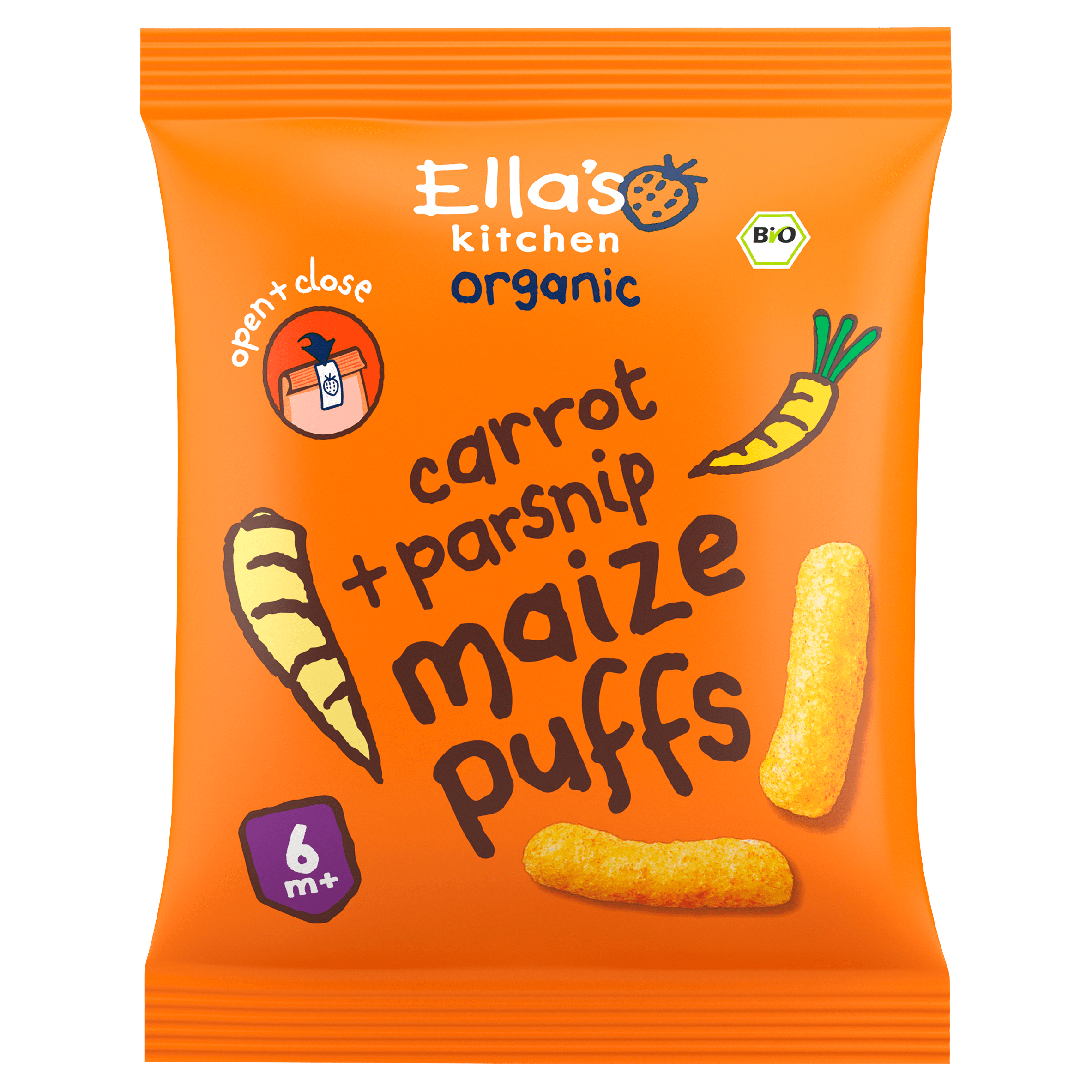 Ella’s Kitchen 6+ Maize puffs carrot parsnip – Plus
