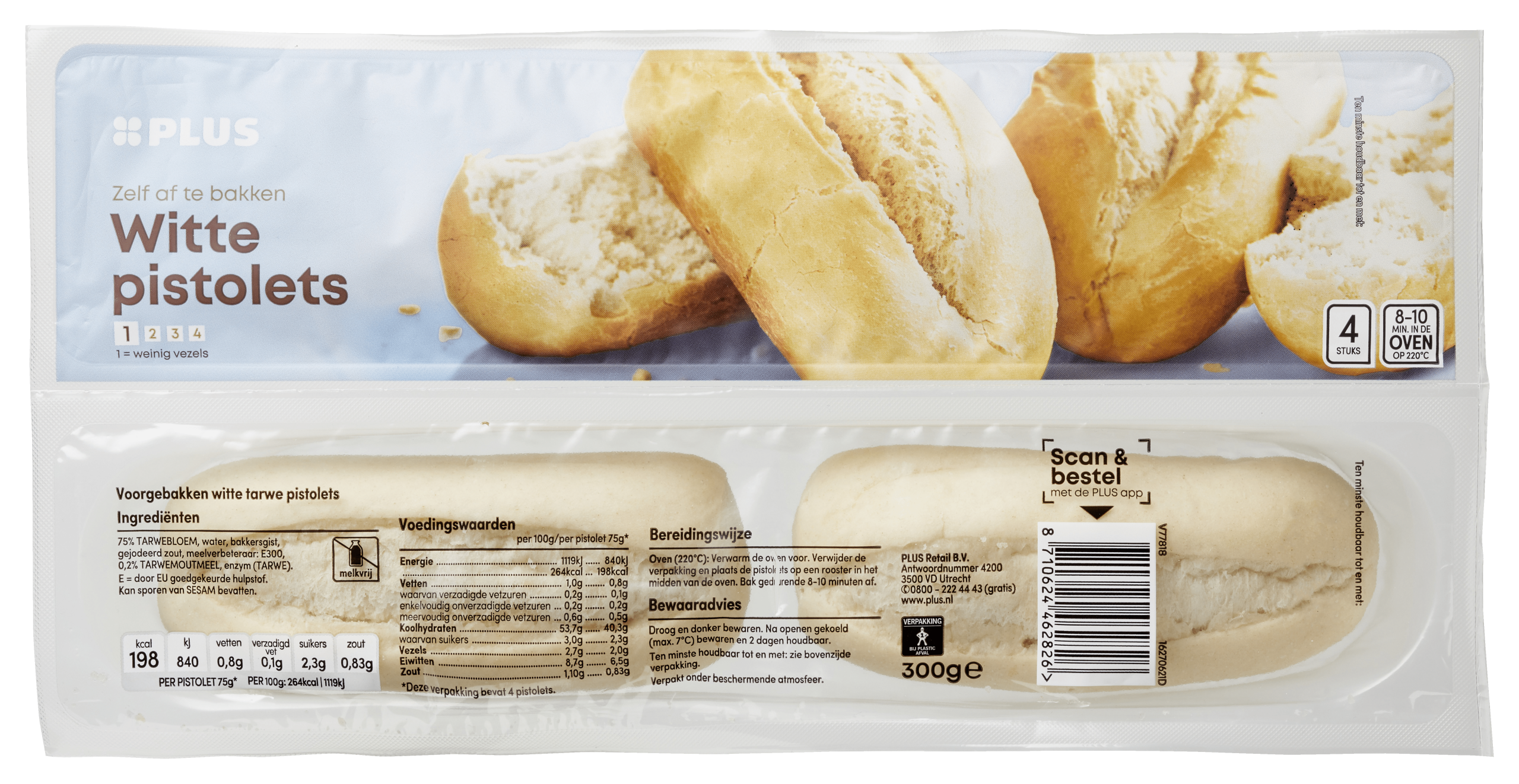 Geniet van de heerlijke PLUS Pistolets wit, voorgebakken broodjes van tarwe die eenvoudig te bereiden zijn in de oven of airfryer. Met een Nutri-Score C zijn ze een smakelijke keuze voor elk moment van de dag. Bewaar ze koel en droog voor optimale versheid!