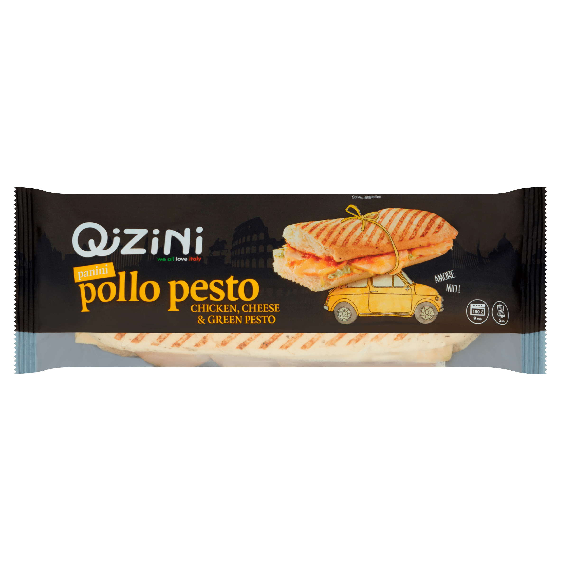 Geniet van de Qizini Panini Pollo Pesto, een heerlijke Italiaanse panini gevuld met malse plakjes kip, romige Gouda kaas, smaakvolle tomaten-tapenade en groene pesto roomkaas. Deze panini is perfect voor elk moment van de dag – of het nu als verrassend ontbijt, een smakelijke lunch of een warme snack is. Laat de panini 9 minuten in de oven op 180°C bakken voor een perfecte, knapperige maaltijd. Serveer het met een frisse salade voor een complete ervaring. Bij QiZiNi worden alle panini’s met de hand belegd, zodat alleen de beste ingrediënten gebruikt worden, allemaal met liefde en vakmanschap.