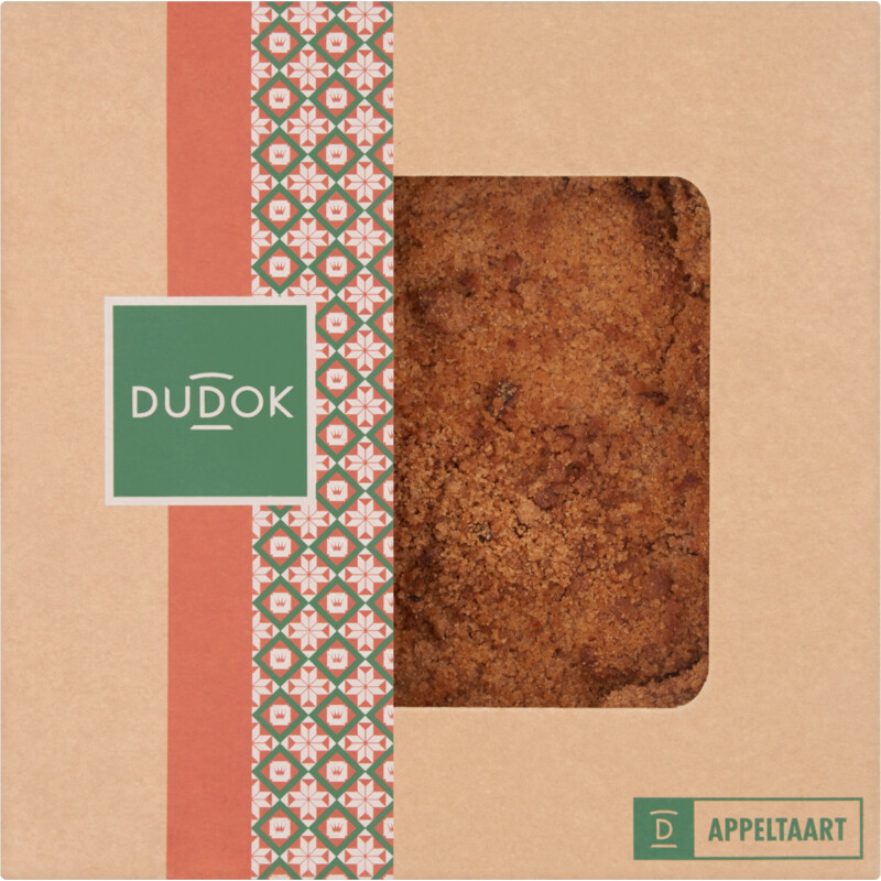 Geniet van de beroemde Dudok Appeltaart, een ambachtelijk bereid meesterwerk dat is gevuld met verse appels, rozijnen en een vleugje kaneel. Deze heerlijke taart, met een smakelijke kruimellaag, is bijna 1,5 kilogram zwaar en perfect voor feestelijke gelegenheden of als een smakelijke traktatie bij de koffie. Een echte must-have voor taartliefhebbers!