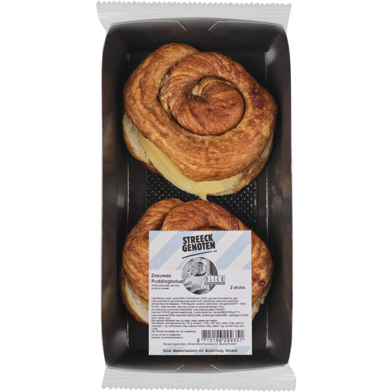 Geniet van de heerlijke Streeckgenoten Zeeuwse Roombolus, een authentiek gebakje gevuld met maar liefst 50% romige pudding. Deze smakelijke bolussen zijn perfect voor bij de koffie of als zoete traktatie tussendoor. Verras jezelf en anderen met deze lekkernij die geeft een echte Zeeuwse ervaring op je bord!