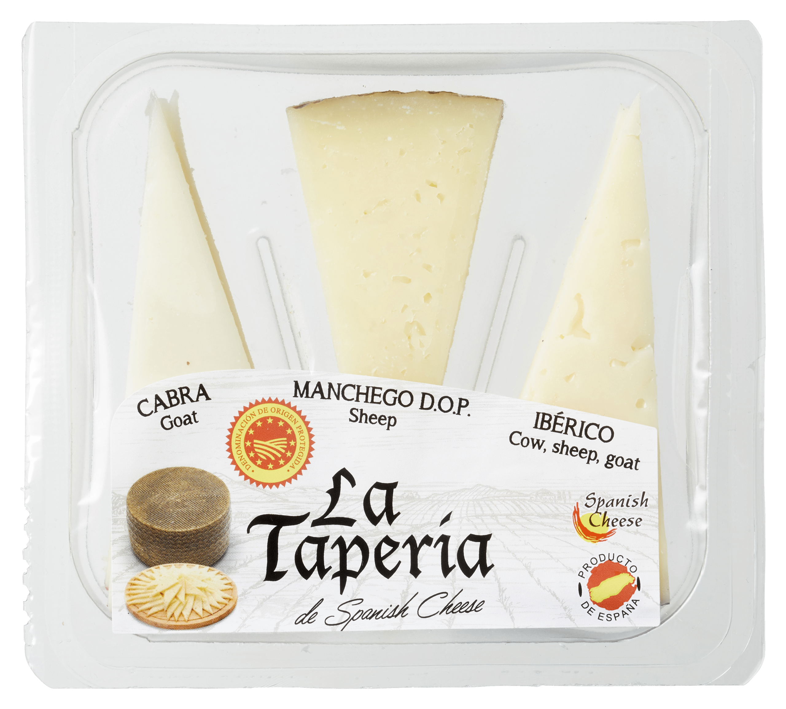 Queso Manchego (BOB*) 50+: gepasteuriseerde schapenMELK, zout, conserveermiddel: scharrelEl-lysozym, dierlijk stremsel, zuursel. Geitenkaas 45+: gepasteuriseerde geitenMELK, zout, conserveermiddel: scharrelEl-lysozym, dierlijk stremsel, zuursel. Ibérico 45+: gepasteuriseerde MELK, gepasteuriseerde schapenMELK 3% gepasteuriseerde geitenMELK 3% zout, vegetarisch stremsel, zuursel, conserveermiddel: scharrelEl-lysozym.