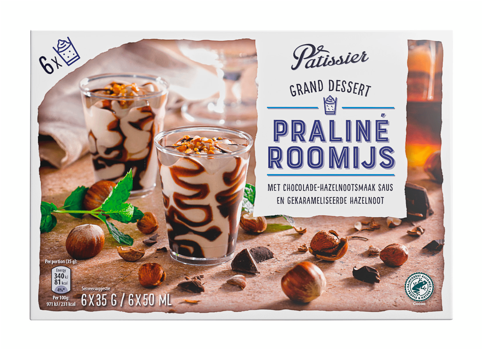 Geniet van de onweerstaanbare combinatie van praliné-roomijs met een rijke chocolade-hazelnootsaus en heerlijke gekarameliseerde hazelnootstukjes. Dit vriesverse dessert is perfect voor elke gelegenheid. Gemakkelijk in gebruik en ideaal om te delen! Bewaar het in de diepvries voor een verfrissende treat wanneer je maar wilt.