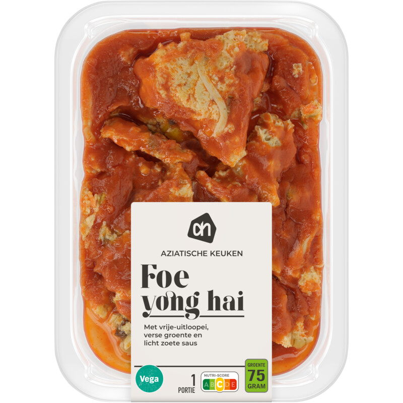 Geniet van de rijke smaken van de AH Foe Yong Hai, een heerlijke gevulde omelet met een mix van verse groenten in een smaakvolle tomatensaus. Deze smaakvolle maaltijd is perfect voor een snelle en voedzame maaltijd, verpakt onder beschermende atmosfeer voor optimale versheid.