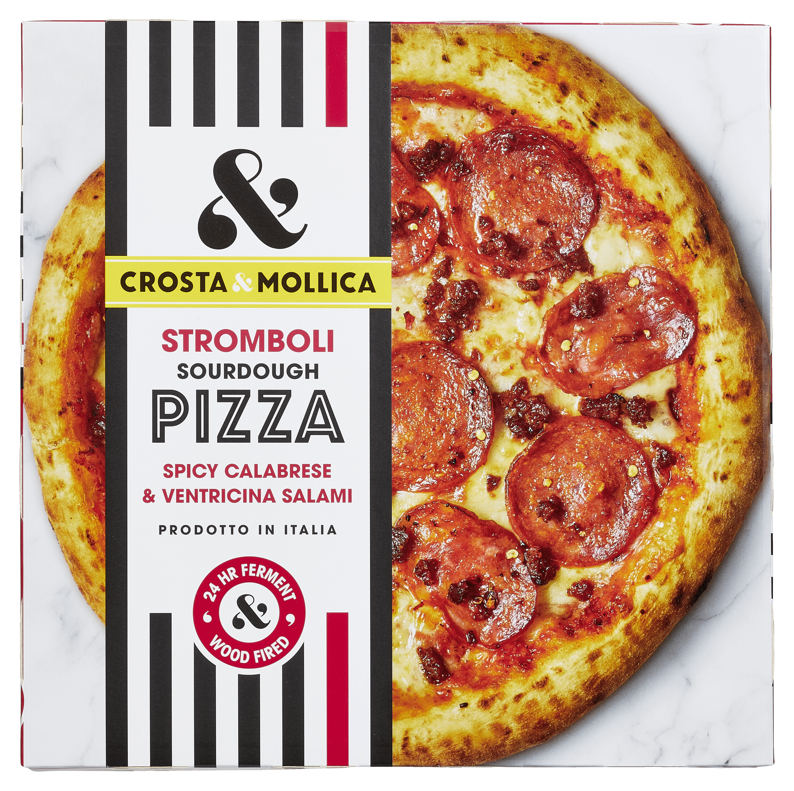Breng de authentieke Italiaanse smaak naar je keuken met de Crosta & Mollica Pizza Stromboli. Deze diepvriespizza, gemaakt van zuurdesem deeg en voorgebakken in een houtoven, is rijkelijk belegd met pittige Calabrese en Ventricina salami, en afgewerkt met heerlijke Pepperoni-kruimels. Eenvoudig in de oven te bereiden, ideaal voor een snelle, smaakvolle maaltijd. Perfect voor een gezellige avond met vrienden of als een snelle hap na een drukke dag.