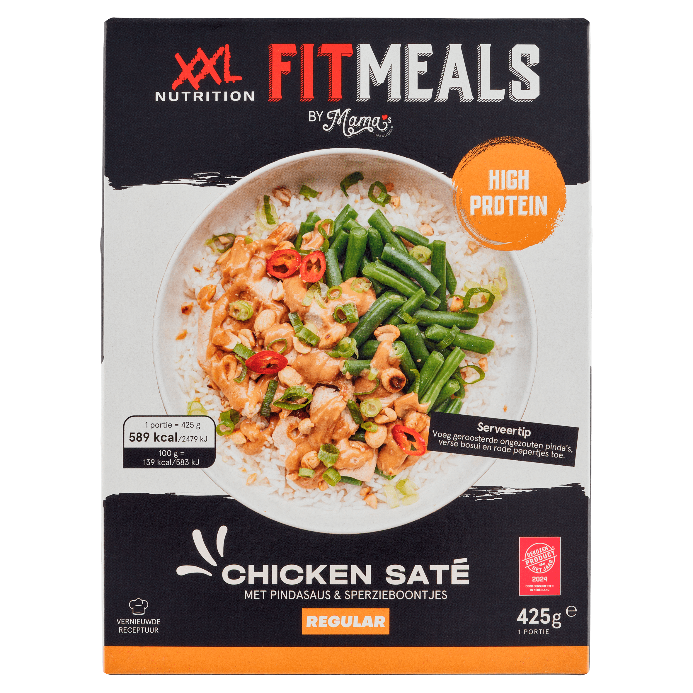 Geniet van de heerlijke combinatie van gekookte rijst, prinsessenbonen en malse geroosterde kip in de Fitmeals Chicken saté. Deze vriesverse maaltijd is eenvoudig en snel te bereiden in zowel de magnetron als de oven, ideaal voor drukke momenten. Met een rijke smaak dankzij ingrediënten zoals kokosmelk, pindanotenpasta en specerijen, is dit een complete maaltijd die je snel op tafel hebt.