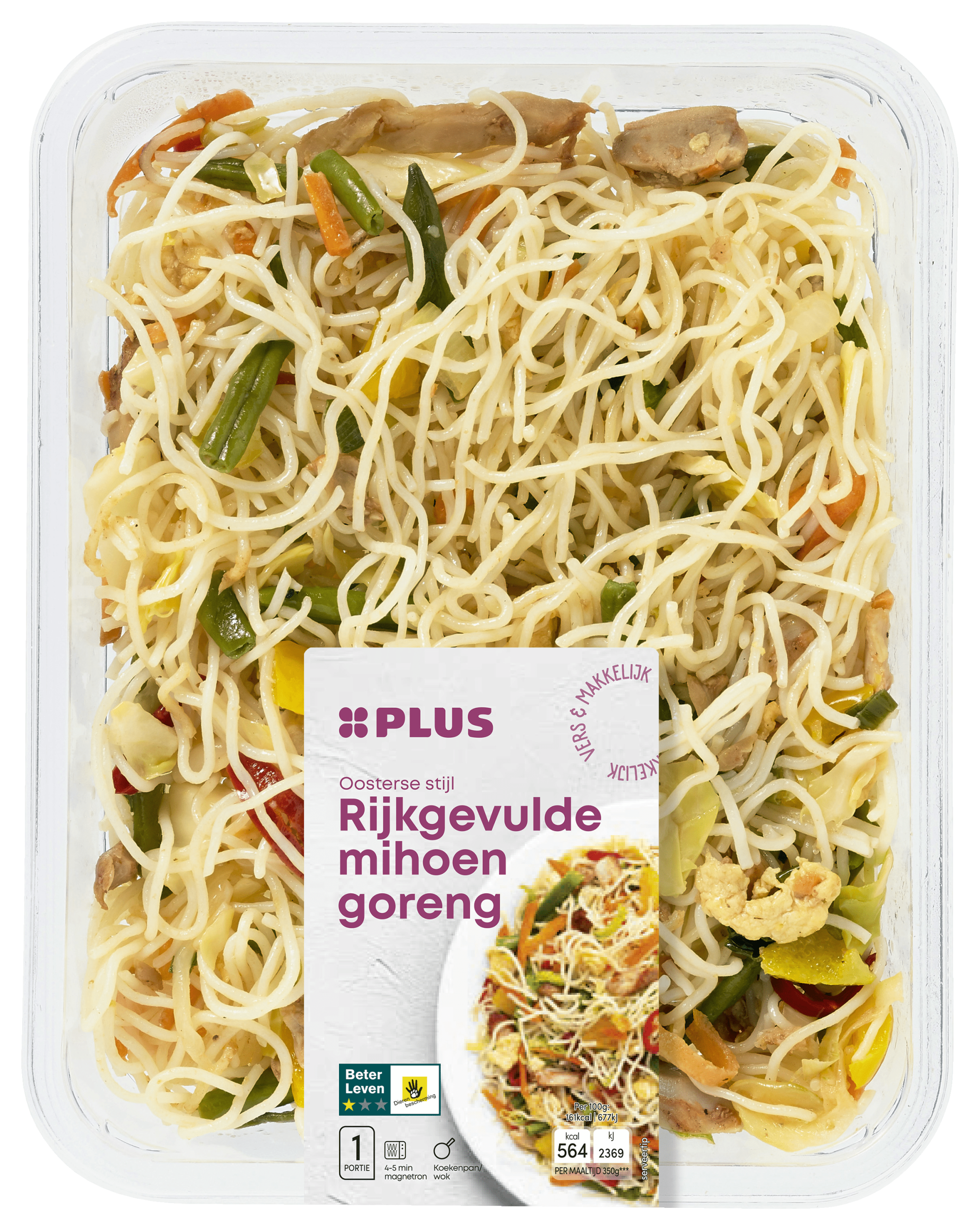 Geniet van de PLUS Rijkgevulde Mihoen, een heerlijke maaltijdtray boordevol verse ingrediënten. Deze vers gewokte mihoen is verrijkt met gemarineerde kip, sperziebonen, paprika, lente-ui en diverse specerijen. Makkelijk te bereiden in de magnetron of een pan, en ideaal voor een snelle, smaakvolle maaltijd. Gekoeld bewaren en binnen enkele dagen consumeren.