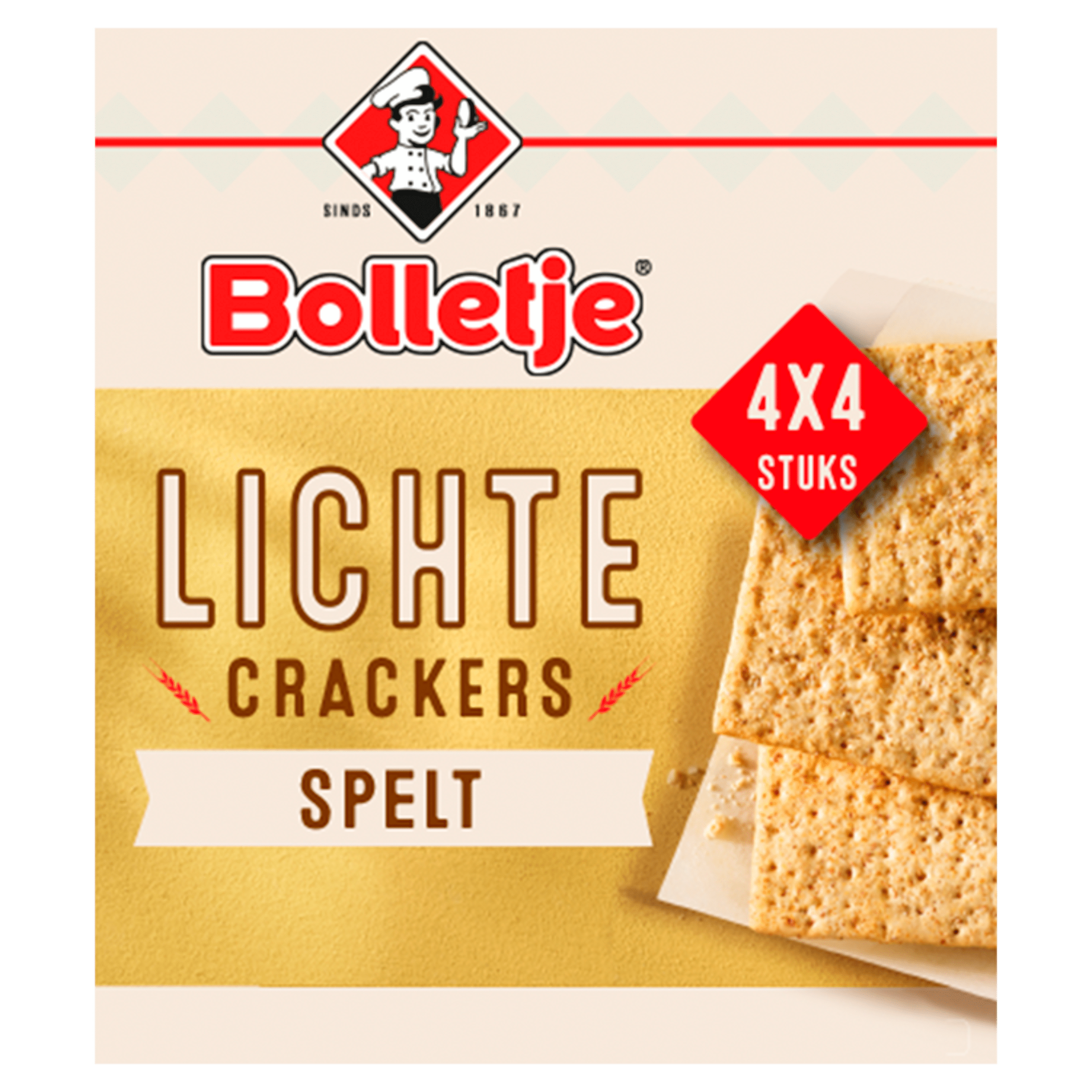 Geniet van de heerlijke Bolletje Lichte Crackers Spelt, gemaakt van de beste spelt. Deze dunne en luchtige crackers zijn rijk aan vezels en boordevol smaak. Perfect als tussendoortje of als basis voor je favoriete beleg. Vegan en met een Nutri-Score A voor een verantwoorde keuze.