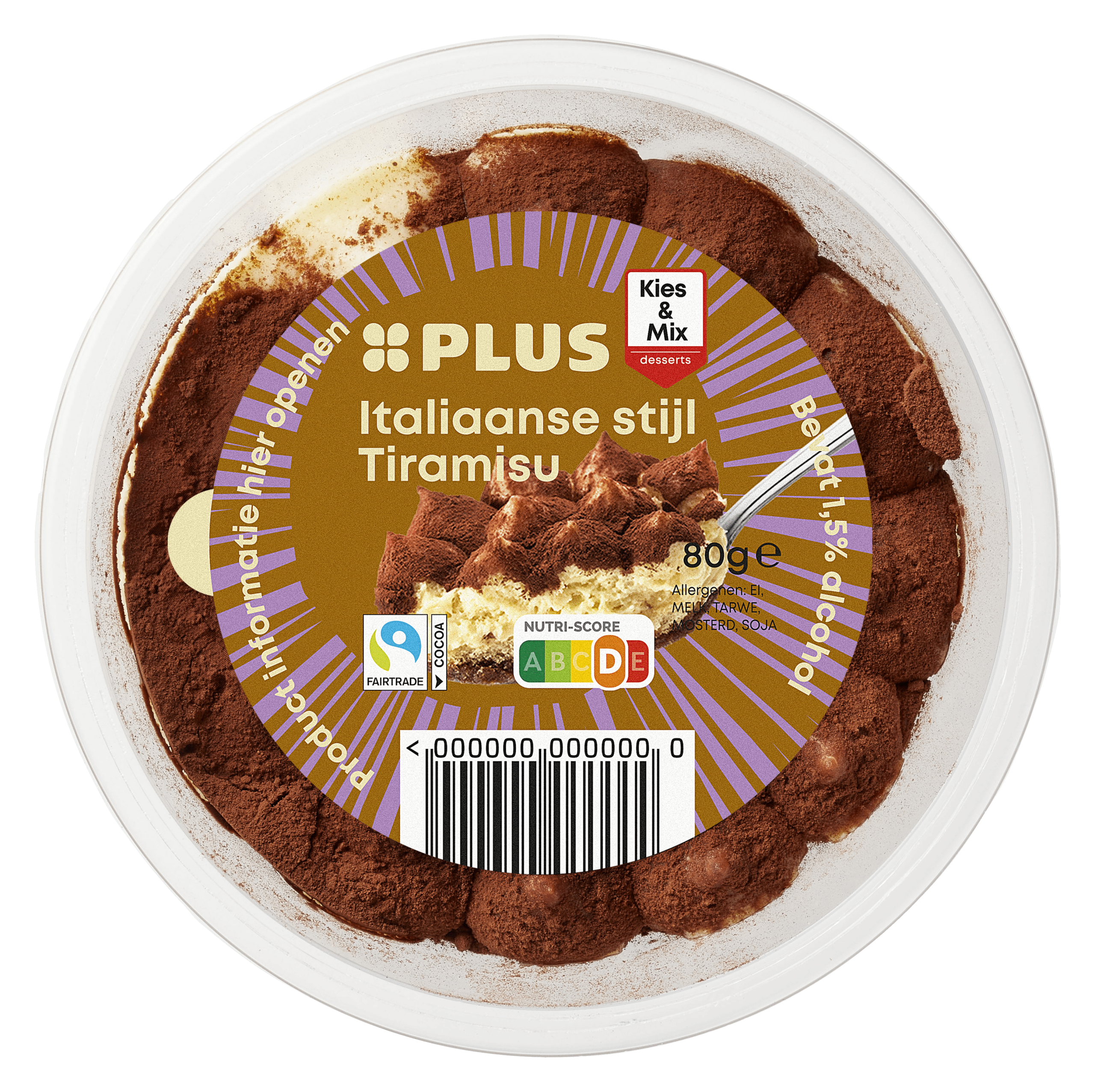 Geniet van de heerlijke PLUS Italiaanse stijl Tiramisu, een verrukkelijk dessert boordevol smaak. Dit romige en luxe toetje bevat authentieke ingrediënten zoals mascarpone en een dulle koffiesaus, perfect voor elke zoetekauw. Ideaal gekoeld te serveren, en met de toevoeging van Fairtrade cacao maakt het een verantwoord en lekker keuze!
