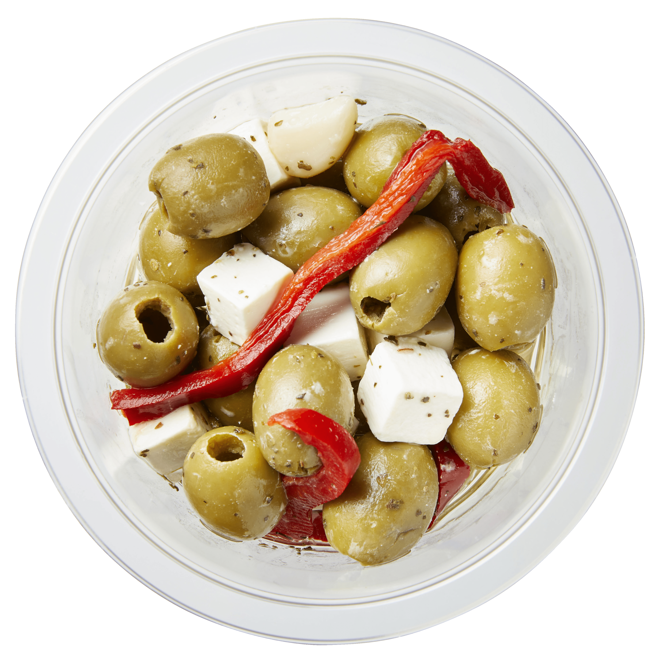Geniet van de heerlijke combinatie van groene olijven en zachte kaas in het PLUS Olijven zachte kaas kuipje. Deze vegetarische lekkernij, met 57% groene olijven en romige kaasblokjes, is ideaal als onderdeel van een tapasplank of als smakelijke snack voor tussendoor. Het product is gekoeld te bewaren en heeft na opening een beperkte houdbaarheid. Perfect voor de liefhebbers van mediterraanse smaken!