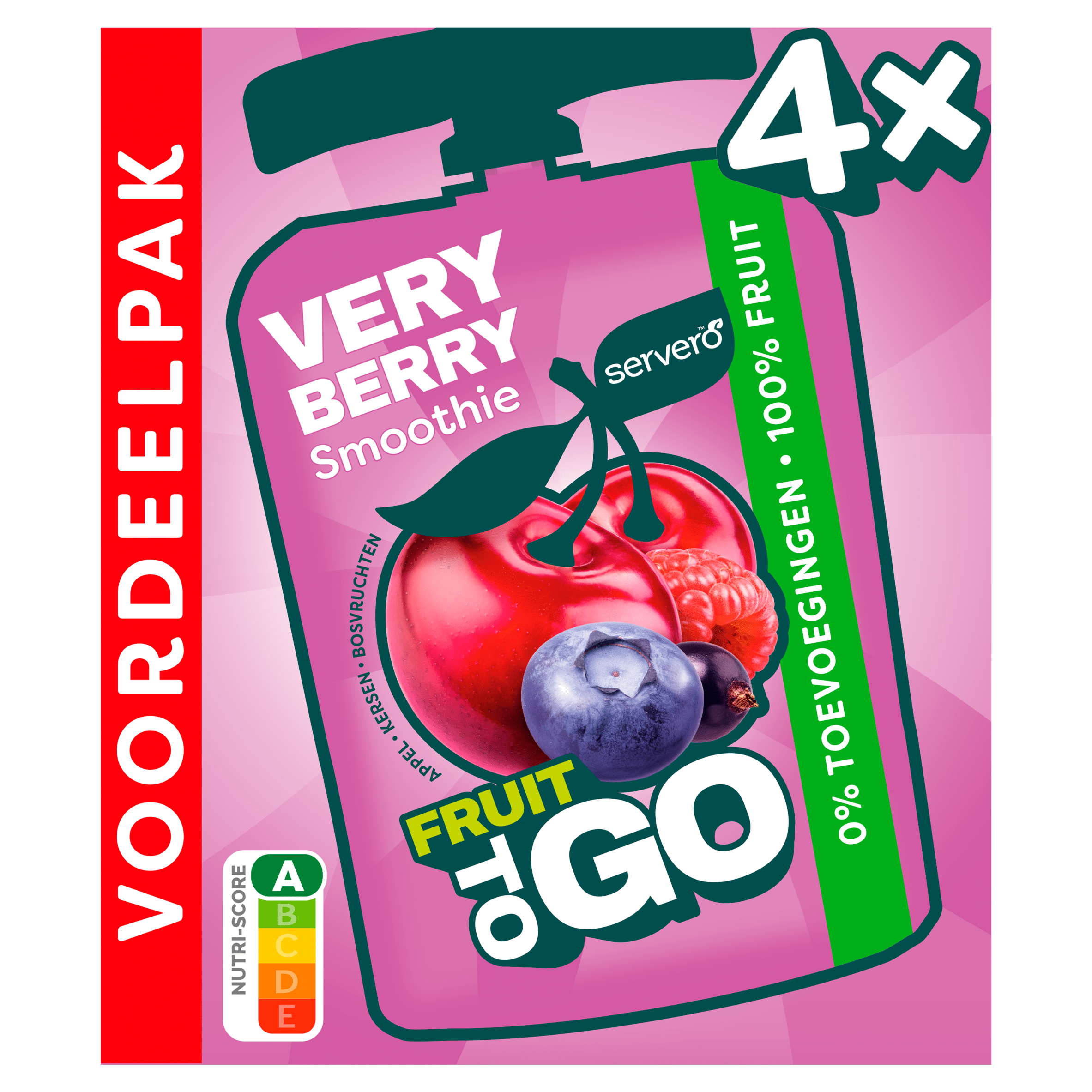 Geniet van de verfrissende Servero Fruit To Go Very Bery, een verantwoord tussendoortje gemaakt van 100% fruit en zonder toevoegingen. Heerlijk zoete kersen gecombineerd met een mix van bosvruchten zorgen voor een smaakexplosie in elke slok. Dankzij de handige portieverpakking ideaal voor onderweg of als gezond snackmoment. Een perfect alternatief voor ongezonde tussendoortjes, met een Nutri-Score A.