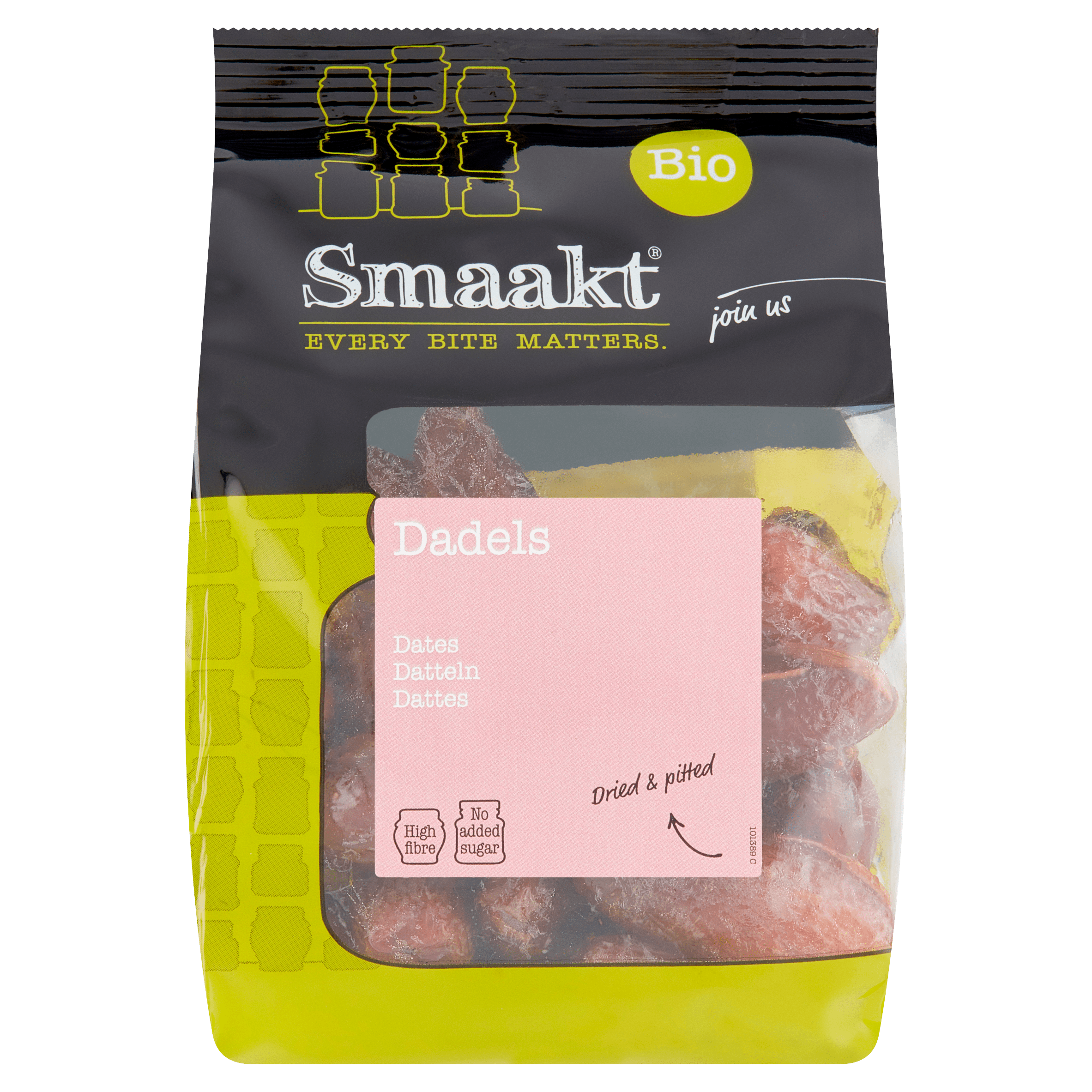 Geniet van de natuurlijke zoetheid van biologische Smaakt Dadels. Deze heerlijke, gedroogde dadels zijn perfect als snack, maar ook heerlijk in salades of gebak. Ze bevatten geen toegevoegde suikers en zijn rijk aan vezels, waardoor ze een gezonde keuze zijn. Bewaar ze op een koele, droge en donkere plek en voeg ze toe aan jouw favoriete gerechten voor een zoete twist.