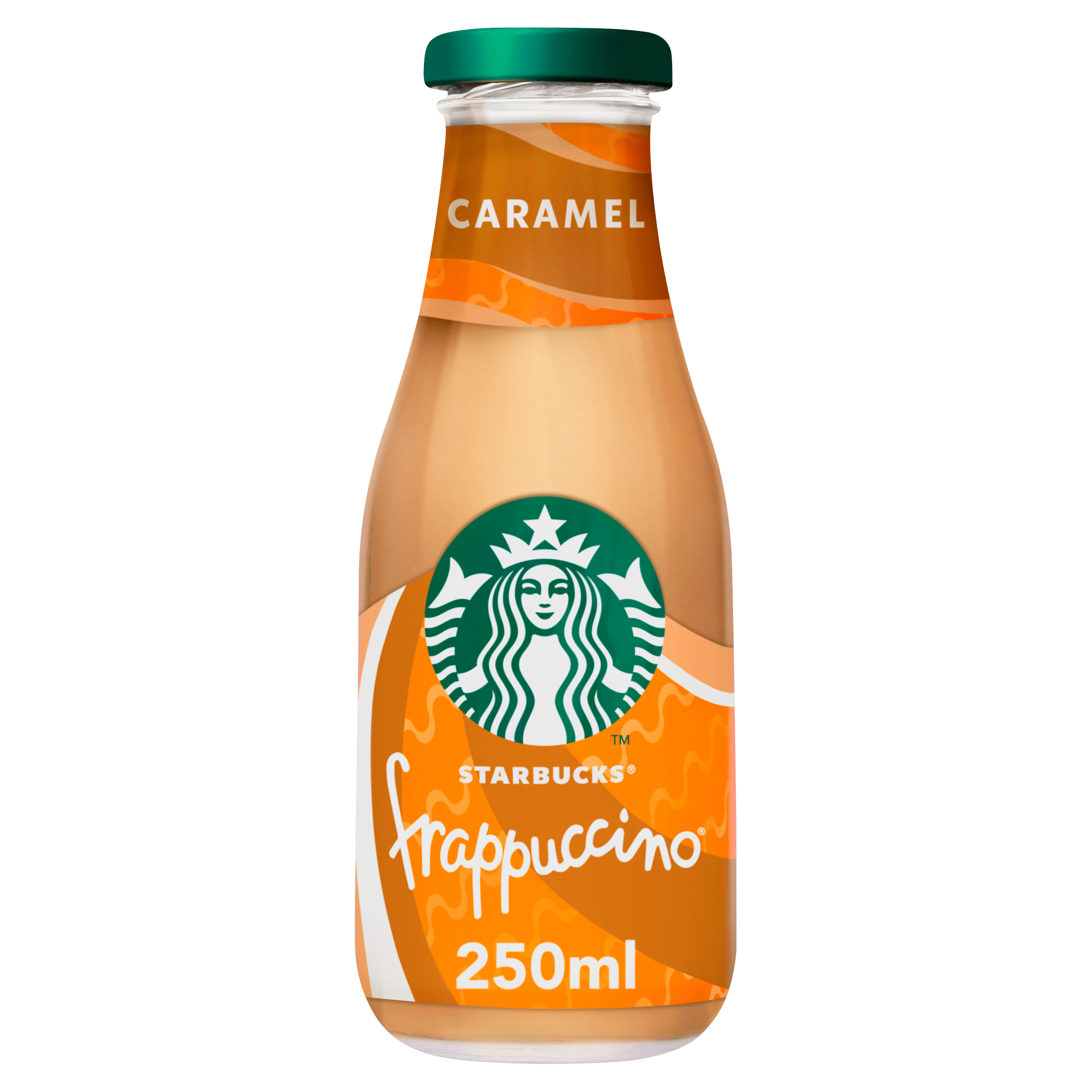Geniet van de heerlijke Starbucks Frappuccino® Caramel, een luxe ijskoffie gemaakt van 100% Starbucks® Arabica koffie, romige melk en een rijke karamel smaak. Deze gekoelde traktatie is perfect om onderweg van te genieten of als verfrissing thuis. De perfecte combinatie van espresso en karamel zorgt voor een onweerstaanbare smaakervaring. Schud de fles goed en drink gekoeld voor een optimale smaakbeleving!