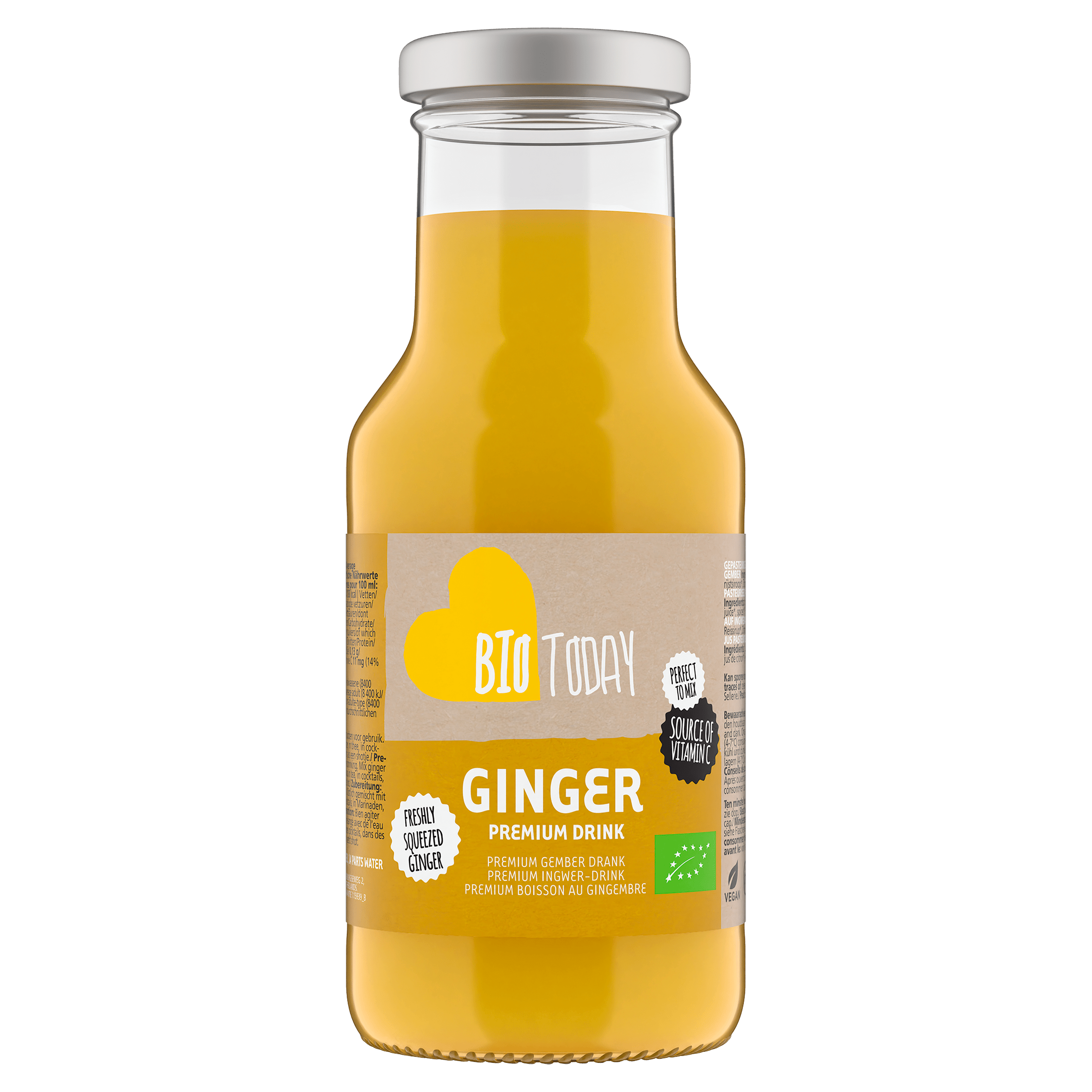 Geniet van de verfrissende BioToday Ginger premium drink, een biologische en veganistische gemberdrank die een uitstekende bron van vitamine C biedt. Perfect om te mixen met bruiswater, thee, cocktails of als marinade in sauzen. Goed schudden voor gebruik en koel bewaren voor een optimale smaakervaring.