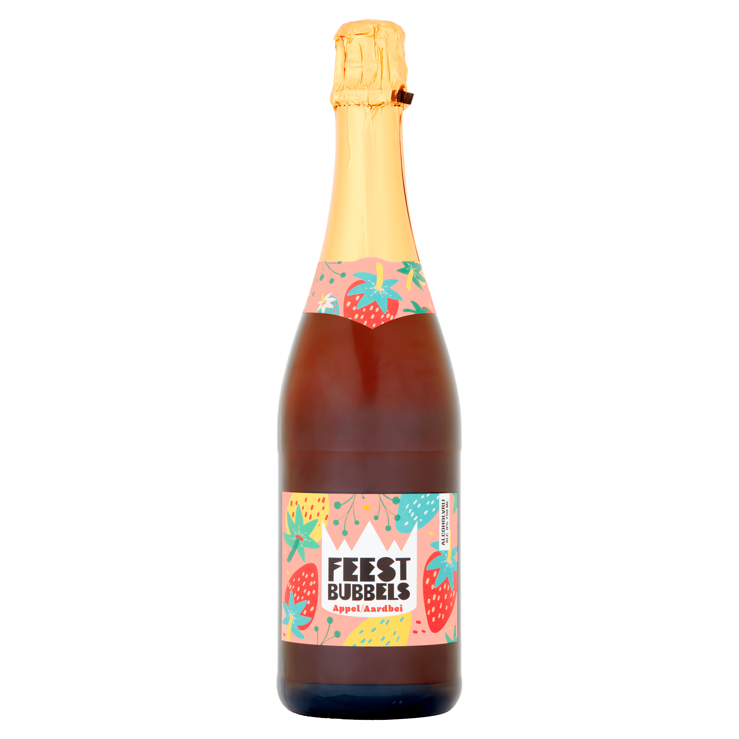 Geniet van de feestelijke smaak van Bubbels Feest met appel en aardbei! Dit heerlijke alcoholvrije drankje is 100% sap, perfect voor kinderen en ideaal voor elke gelegenheid. Serveer gekoeld en geniet van de sprankeling. Na opening is het product maximaal 7 dagen houdbaar in de koelkast. Met o.a. 96% appel en 3% aardbei, aangevuld met diverse andere fruitsoorten, biedt het een verfrissende smaakbeleving zonder toevoegingen van alcohol.
