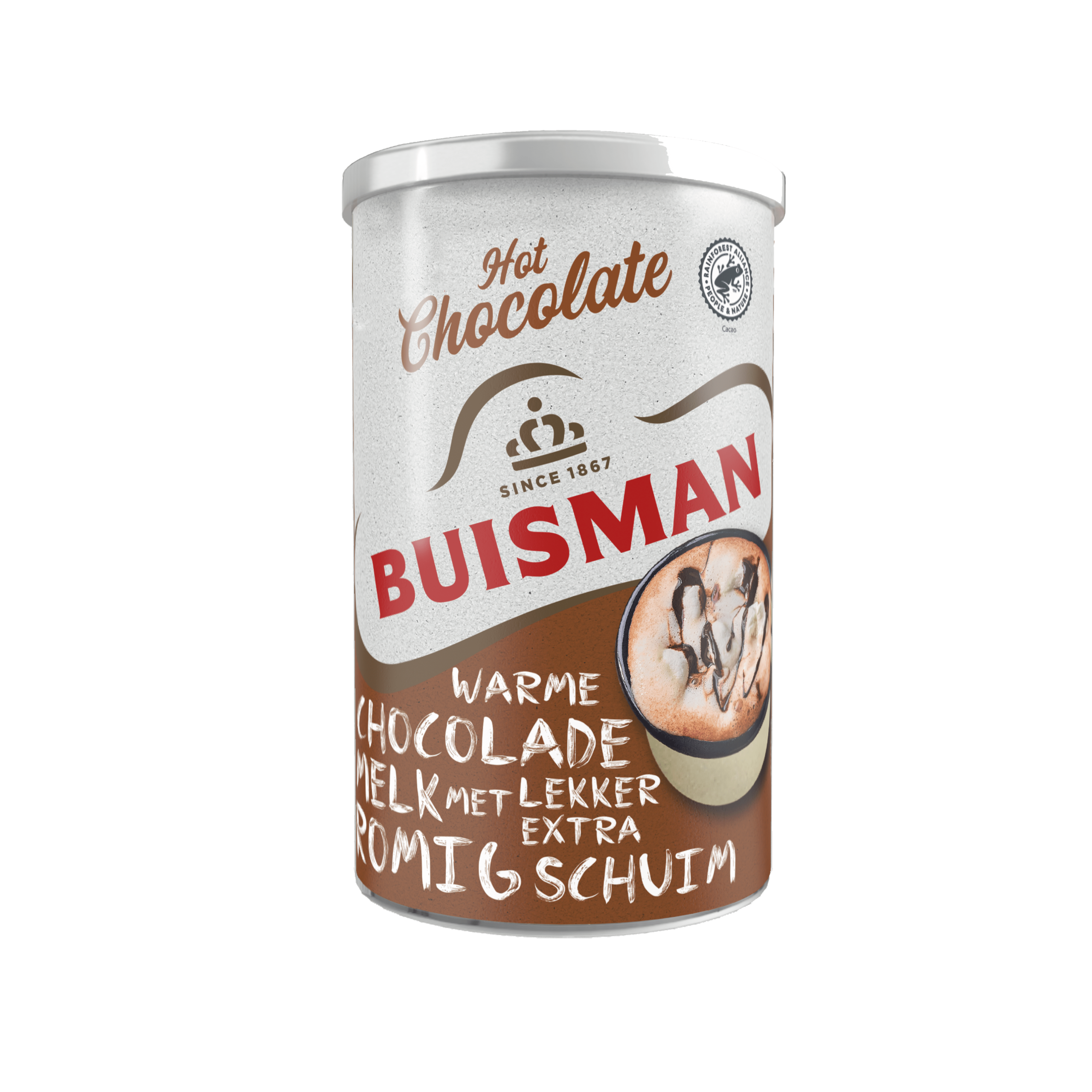 Geniet van de rijke smaken van Buisman Hot Chocolate, een instant mix voor een heerlijke cacaodrank. Perfect voor elk moment, of je nu ontspant met een boek, vrienden om je heen hebt, of gewoon jezelf wilt verwennen. Roer eenvoudig 2 eetlepels poeder in heet water en binnen een minuut kun je genieten van jouw warme chocolademoment.