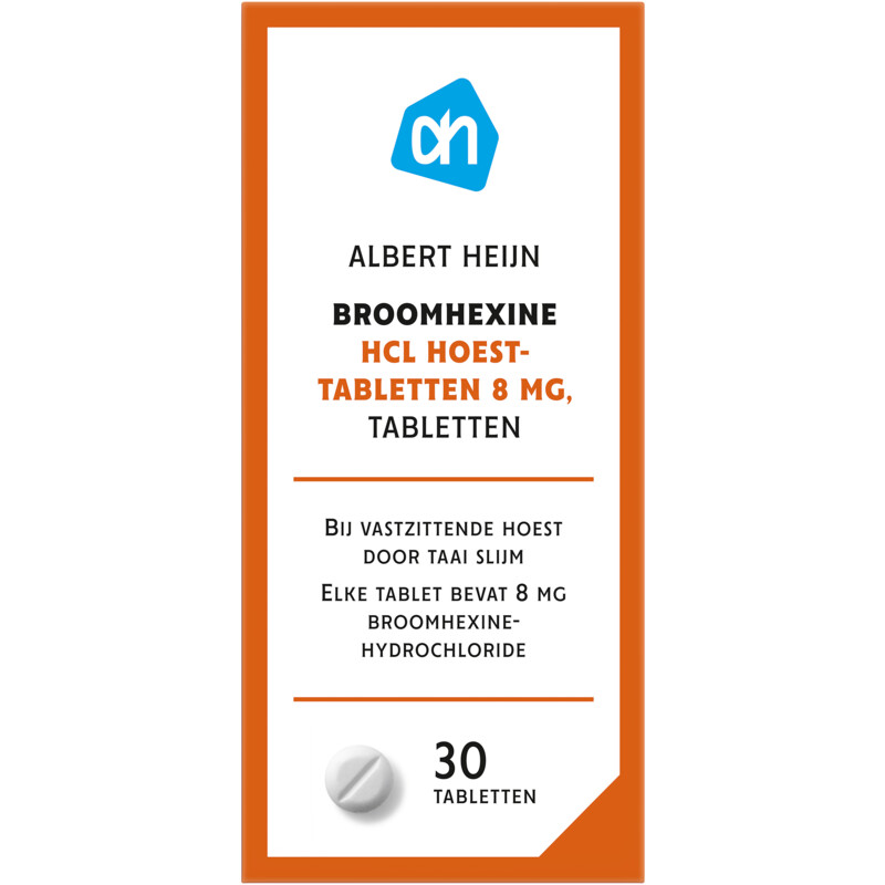 De AH Hoesttabletten met Broomhexine HCl zijn speciaal ontwikkeld om vastzittende hoest door taai slijm te verlichten. Met een werkzame stof van 8 mg broomhexinehydrochloride, helpen deze tabletten je om weer vrijer te ademen. Ideaal voor als je last hebt van een verstopte luchtweg. Lees voor gebruik zorgvuldig de bijsluiter en houd het product buiten bereik van kinderen.