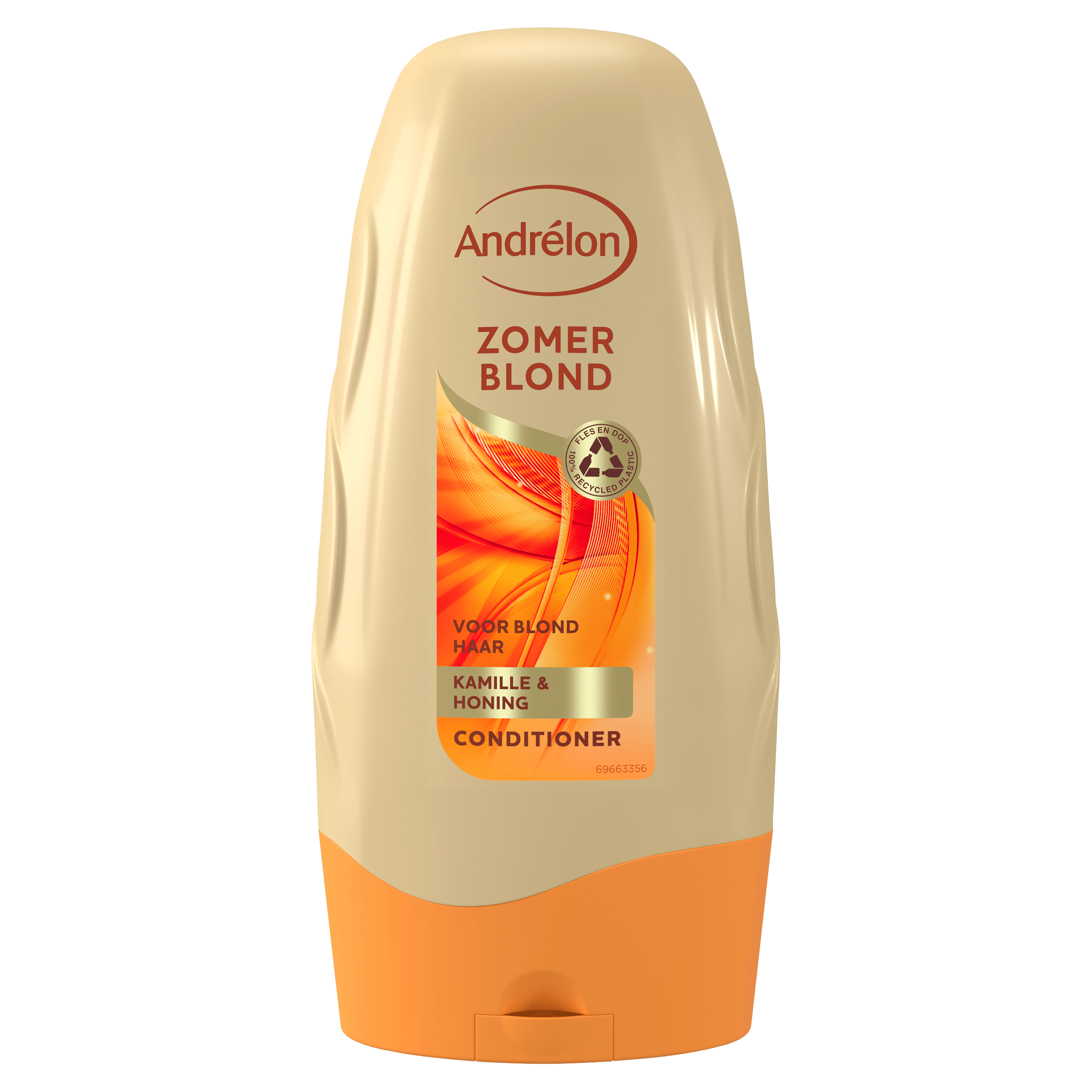 De Andrélon Honing Blond Conditioner, speciaal ontwikkeld voor blond haar en highlights, zorgt voor heerlijk verzorgd, vol en sterk haar met een natuurlijke glans. Verrijkt met kamille en honing, biedt deze conditioner niet alleen verzorging, maar ook bescherming door een uv-filter. De 100% recyclebare verpakking maakt het een bewuste keuze voor je haar én de planeet.