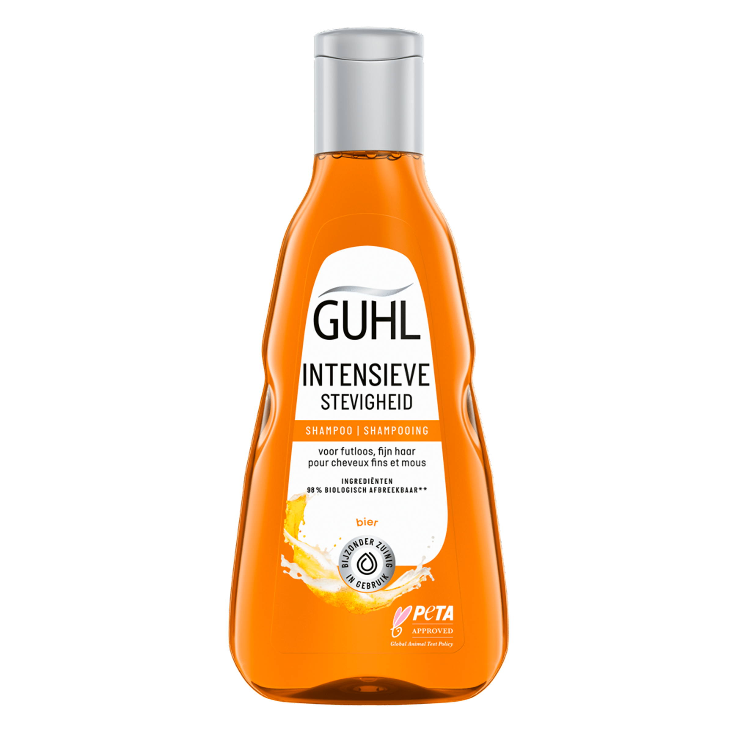 De Guhl Intensieve Stevigheid Shampoo verstevigt het haar sinds de aanzet, waardoor je haar tot wel 80% sterker wordt. Deze shampoo is verrijkt met de kracht van bier, dat bekend staat om zijn verstevigende eigenschappen dankzij de gerst en mout. Geniet van zichtbaar voller haar en minder haarbreuk, al na de eerste wasbeurt. Verwen jezelf met een sensuele geurbeleving bij elk gebruik.