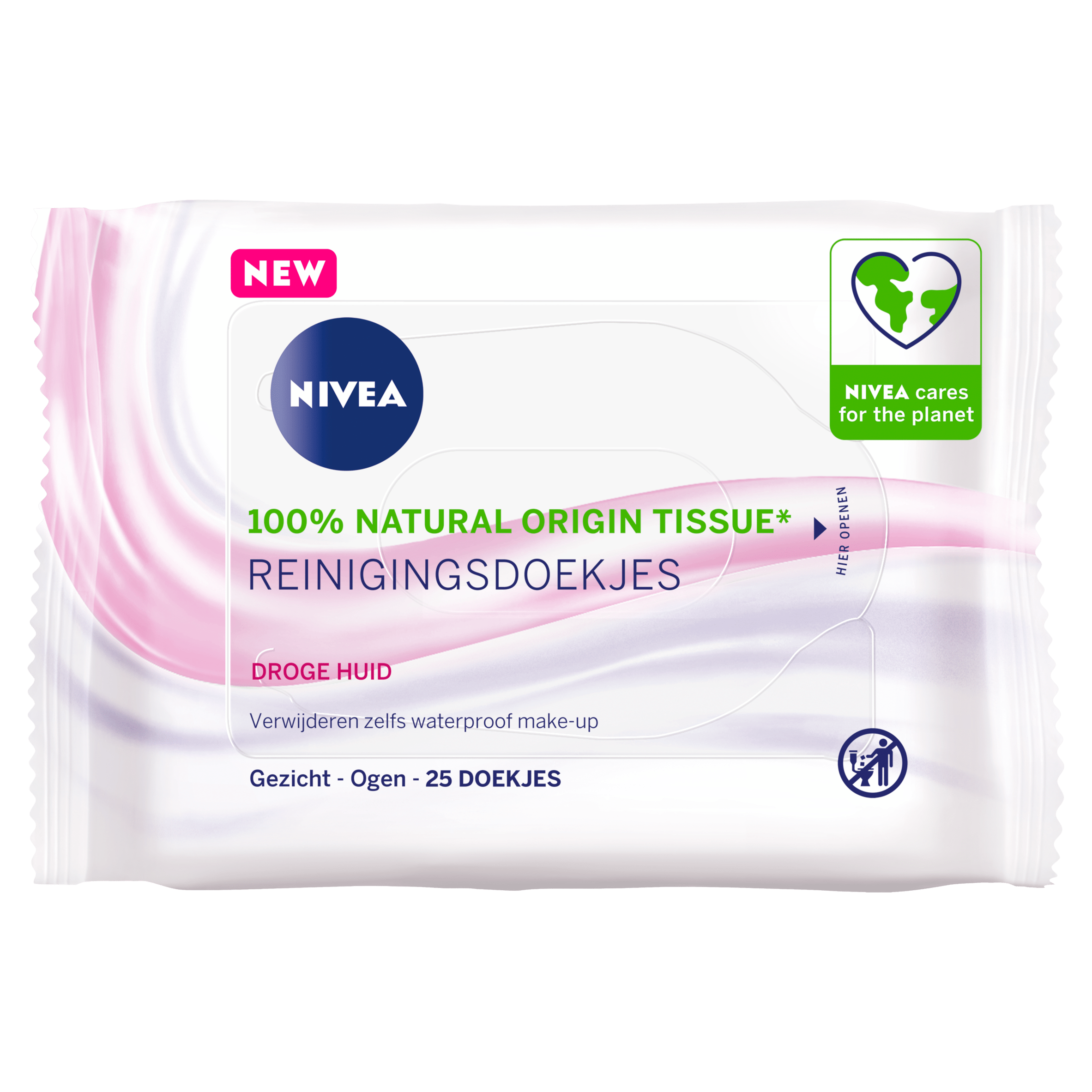 Ervaar de verzorging van de Nivea 3-In-1 Verzachtende Reinigingsdoekjes. Deze zachte doekjes zijn speciaal ontwikkeld om doeltreffend waterproof make-up en mascara te verwijderen, terwijl ze de gevoelige huid met zorg reinigen en hydrateren. Met de unieke SkinGentle Complex formule, verrijkt met Pro-Vitamine B5, behouden deze doekjes de natuurlijke vochtbalans van je huid. Maak je dagelijkse huidverzorging compleet met 100% plantaardige vezels, dermatologisch getest voor optimale huidvriendelijkheid.