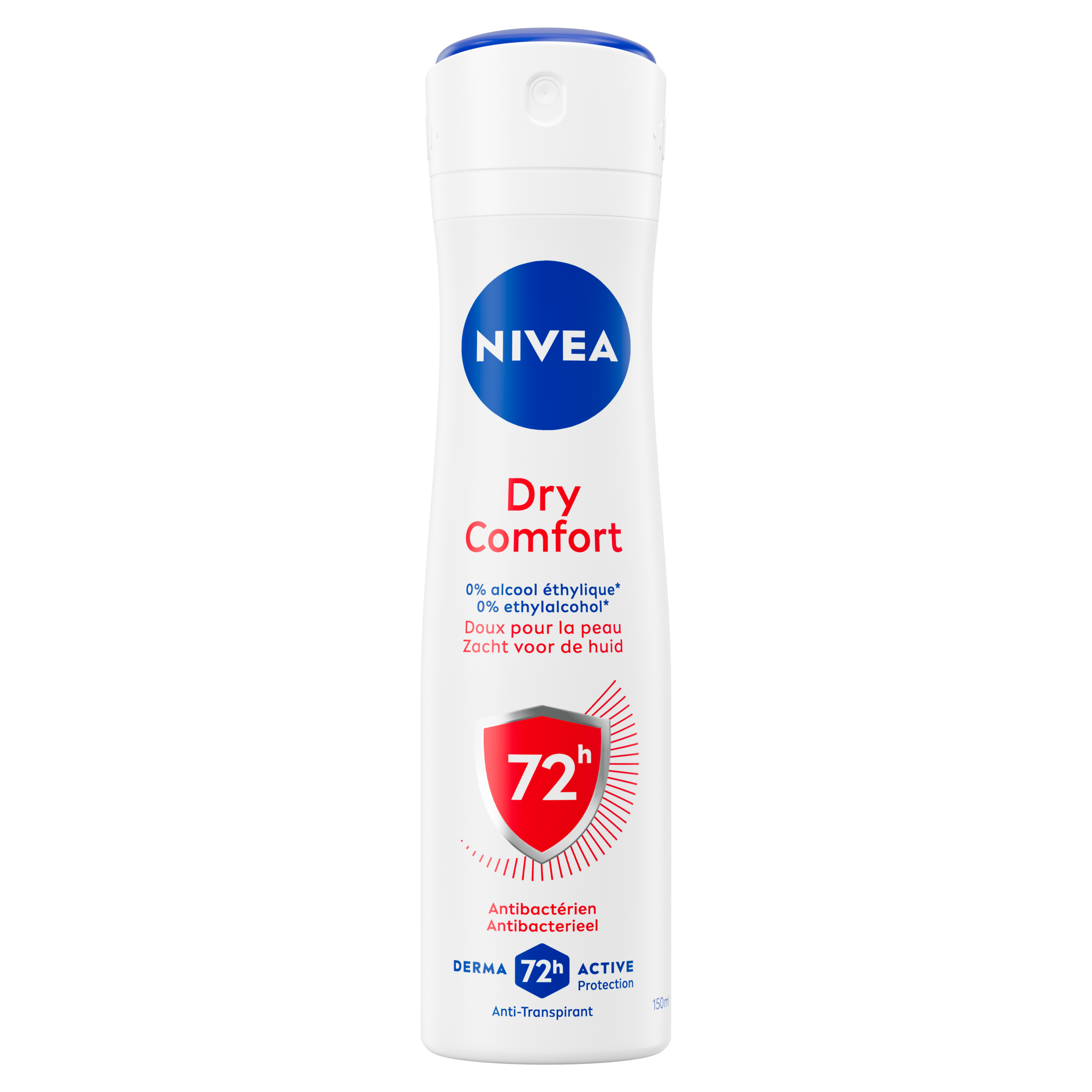 Ervaar een langdurige bescherming tegen zweet en geur met Nivea Deo Spray Dry Comfort. Deze dermatologisch geteste spray biedt 72 uur zweet- en geurbescherming en bevat 0% alcohol, waardoor je een comfortabel en droog huidgevoel hebt. Dankzij de unieke Dual Protect formule met twee antibacteriële actieve ingrediënten, blijft je huid fris en verzorgd. Perfect voor dagelijks gebruik, zelfs op gevoelige huid.