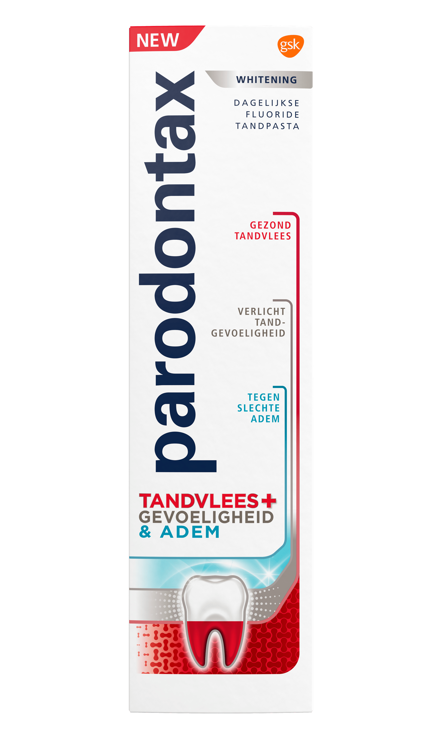 Parodontax Tandvlees + Gevoeligheid & Adem Whitening Tandpasta is een klinisch bewezen formule die helpt bij het behoud van gezond tandvlees en voorkomt tandgevoeligheid. Dankzij de unieke Pro-Neutra technologie neutraliseert deze tandpasta bacteriën die een slechte adem veroorzaken en verwijdert het voorzichtig oppervlakkige vlekken voor een stralende glimlach. Gebruik het regelmatig voor optimale resultaten.