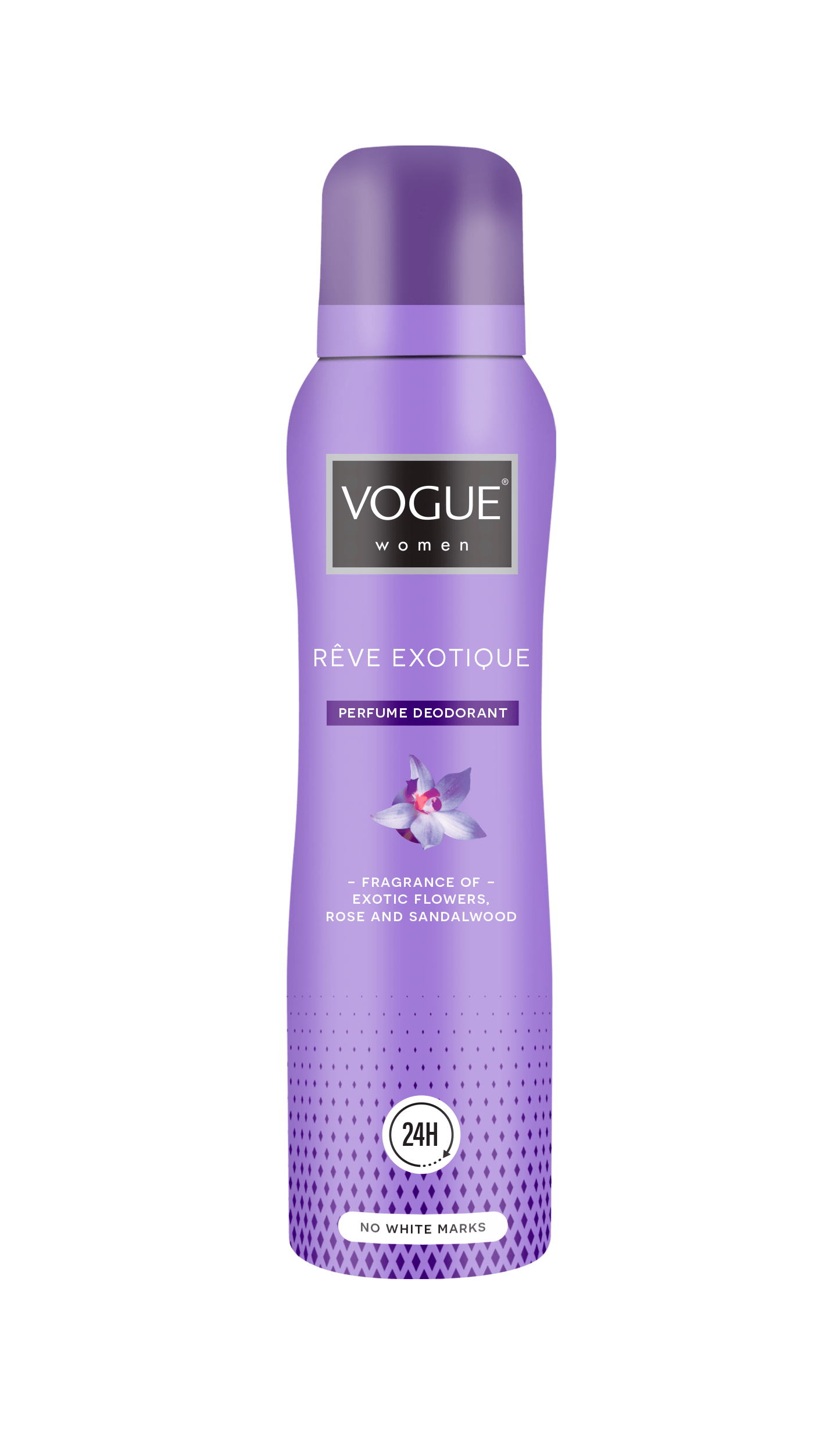 Geniet van de gewaagde, langdurige geur van Rêve Exotique met deze unieke parfum deodorant van Vogue. Deze deodorant biedt niet alleen 48 uur lang bescherming, maar combineert ook de zoete jasmijn en bloemige roos met kruidige sandelhout en exotische neroli. Laat geen witte strepen achter en voelt als een luxe toevoeging aan je dagelijkse routine. Met een vernieuwde uitstraling die 44% minder plastic gebruikt, kies je ook voor een duurzame optie. Geef je leven glans en zelfvertrouwen met Rêve Exotique!