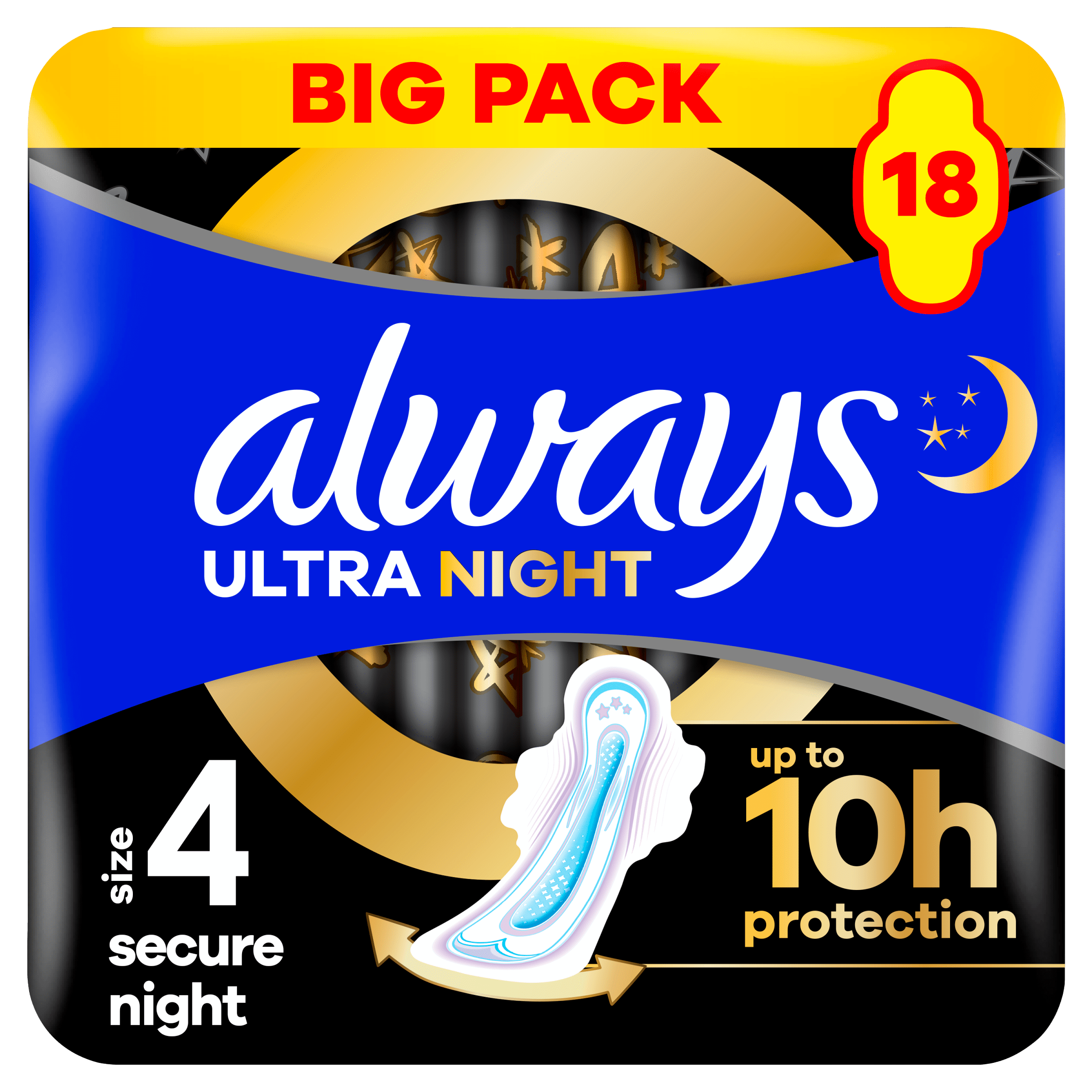 Zorg voor een comfortabele en droge nacht met Always Ultra maandverband Secure Night. Dit maandverband biedt uitstekende bescherming en absorptie, speciaal ontworpen voor gebruik ’s nachts. Elke zak bevat 18 stuks, ideaal voor langdurig gebruik. Geniet van gratis verzending bij een besteding van 15 euro of meer!