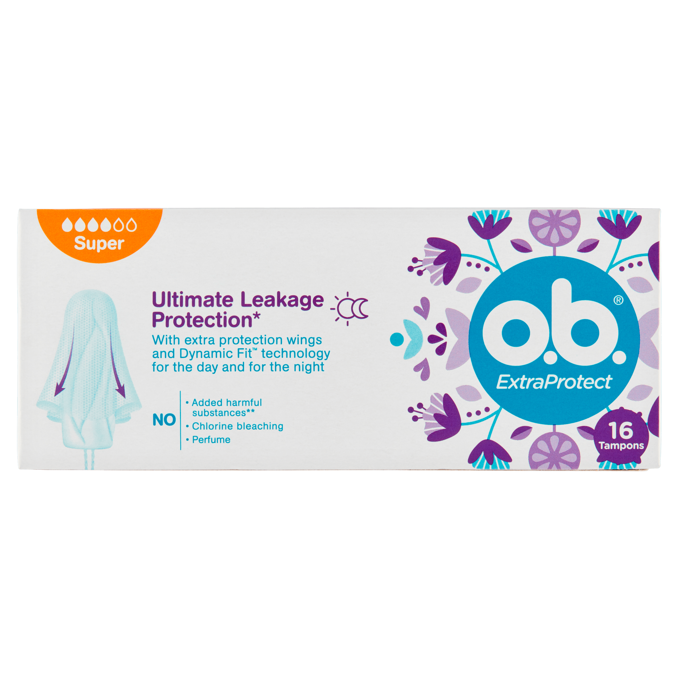 Ervaar ultieme bescherming tijdens zwaardere menstruatiedagen met de o.b.® Extra Protect Super-tampons. Deze tampons combineren geavanceerde technologieën om lekken te voorkomen. De extra beschermingsvleugels vangen vocht dat bij gewone tampons kan ontsnappen, terwijl de unieke Dynamic Fit™-technologie zorg draagt voor optimale vochtverdeling. Gynaecologisch getest en vrij van schadelijke chemicaliën, zoals pesticiden en parfum, bieden deze tampons een veilige keuze voor je gezondheid.