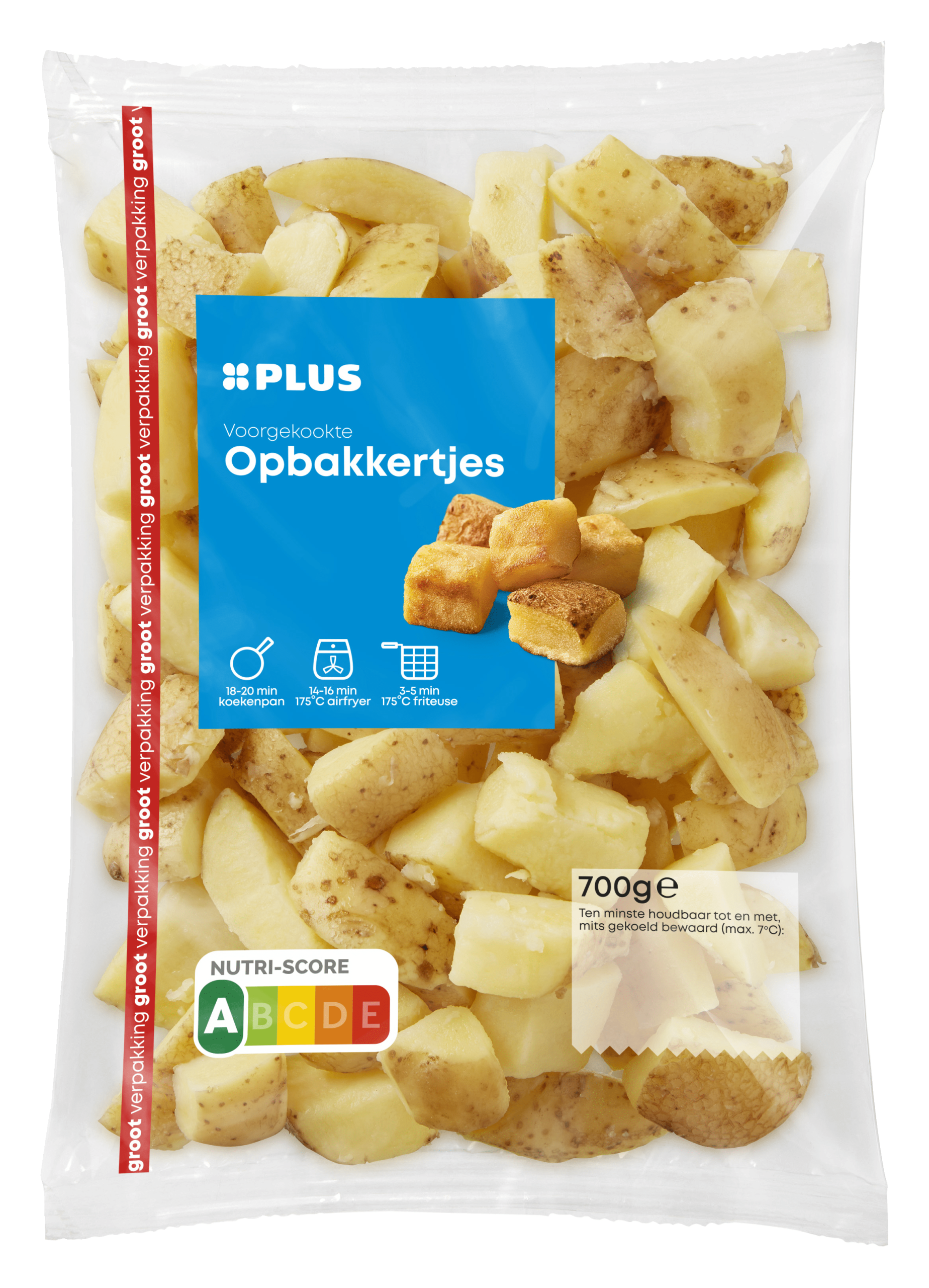 Geniet van de heerlijke PLUS Opbakkertjes! Deze voorgekookte aardappelen zijn perfect voor een snelle en smaakvolle maaltijd. Met een Nutri-Score A zijn ze een gezonder alternatief voor frietjes en zijn ze zowel vegan als vegetarisch. Bereid ze eenvoudig in de koekenpan, airfryer of friteuse. Ideaal als bijgerecht of voor in een snackmoment.