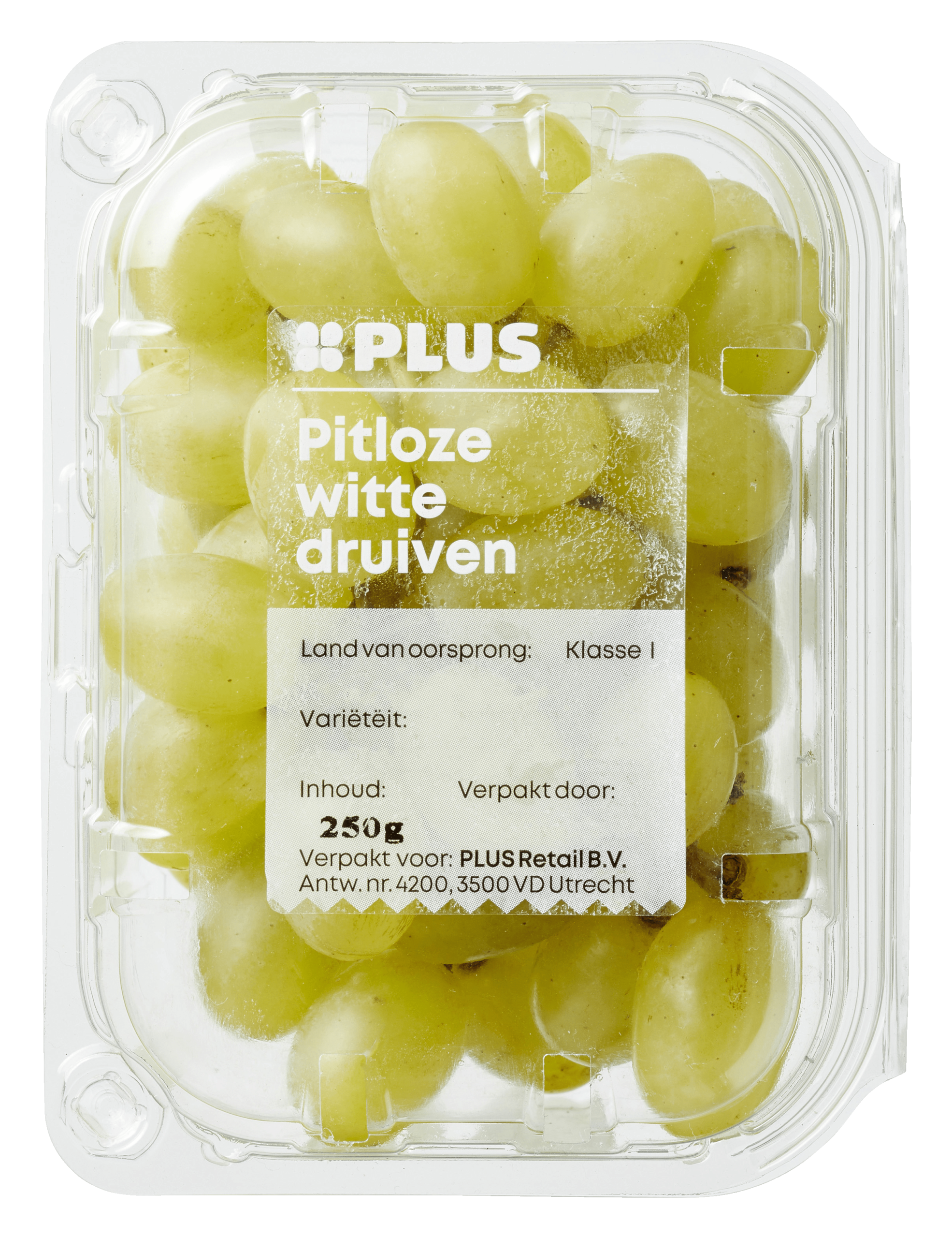 Geniet van de zoete en sappige PLUS Druiven wit pitloos, verpakt in een handige bakje met deksel. Perfect voor een gezonde snack of als toevoeging aan je (fruit)salade. Deze druiven zijn pitloos en makkelijk te eten, ideaal voor onderweg!
