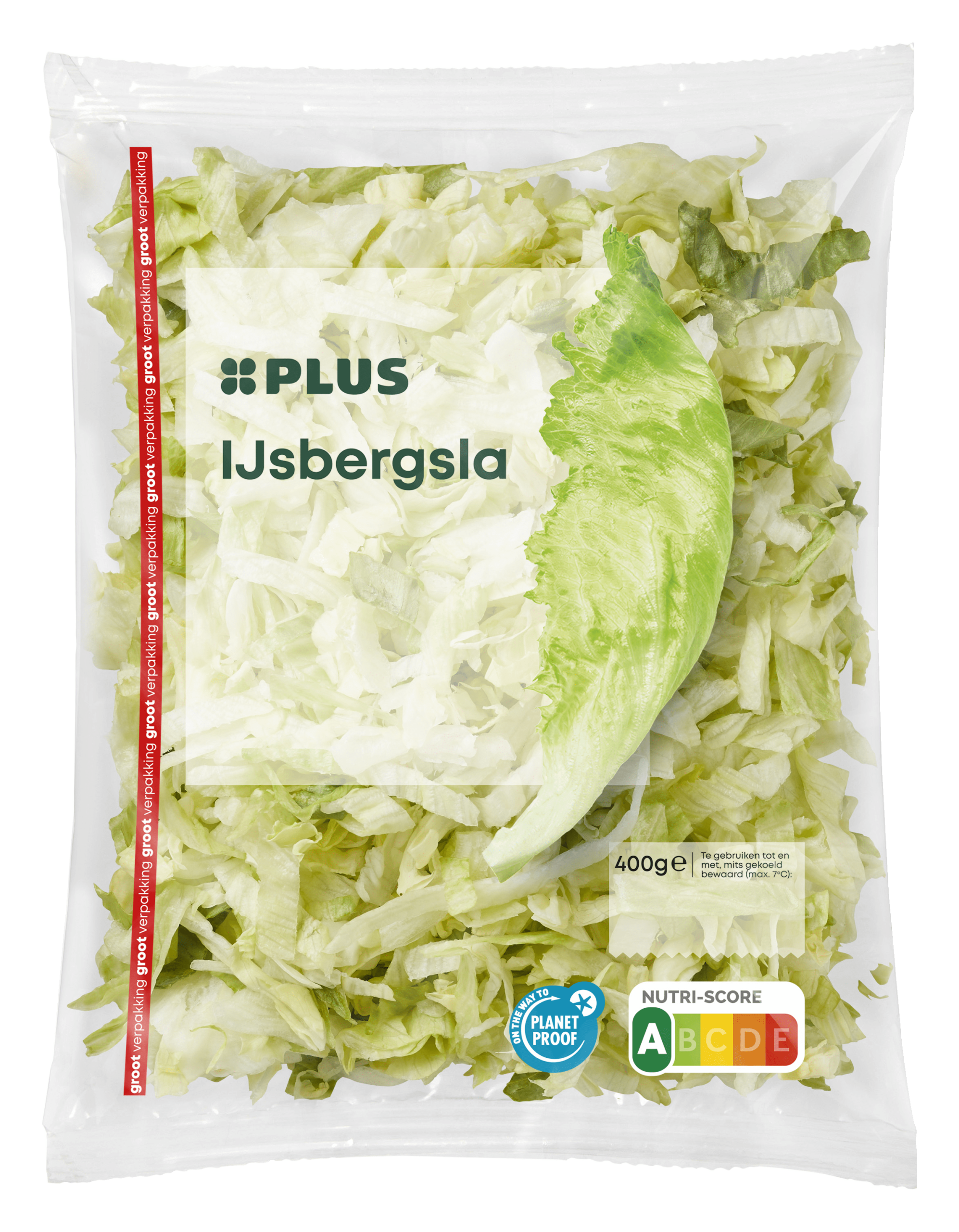 Geniet van de verse en knapperige PLUS IJsbergsla. Deze gesneden ijsbergsla is een veelzijdige toevoeging aan je maaltijden en is perfect voor salades en als krokante verhouding in wraps en burgers. Laag in calorieën en rijk aan voedingsvezels, het is een gezonde keuze voor elke maaltijd. Bewaar de sla gekoeld voor de beste kwaliteit.