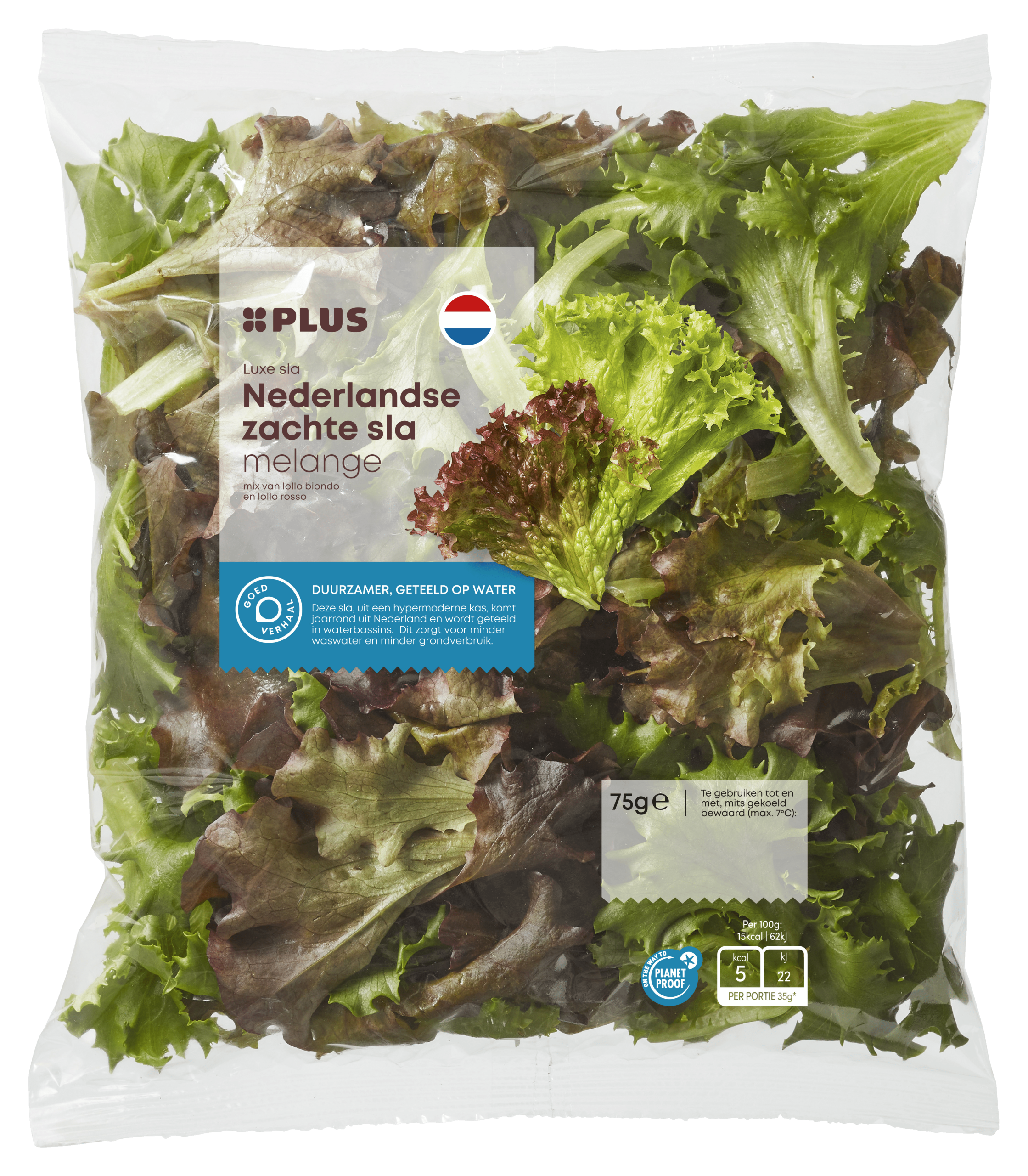 De PLUS Nederlandse zachte slamelange is een heerlijke mix van verse, gesneden lollo bionda en lollo rosso. Met een Nutri-Score A is deze sla niet alleen gezond maar ook een veganistische keuze. Perfect voor een lichte maaltijd of als frisse toevoeging aan je favoriete gerechten. Bewaar de slamelange na opening in de koelkast (max. 7 °C) voor optimaal behoud.