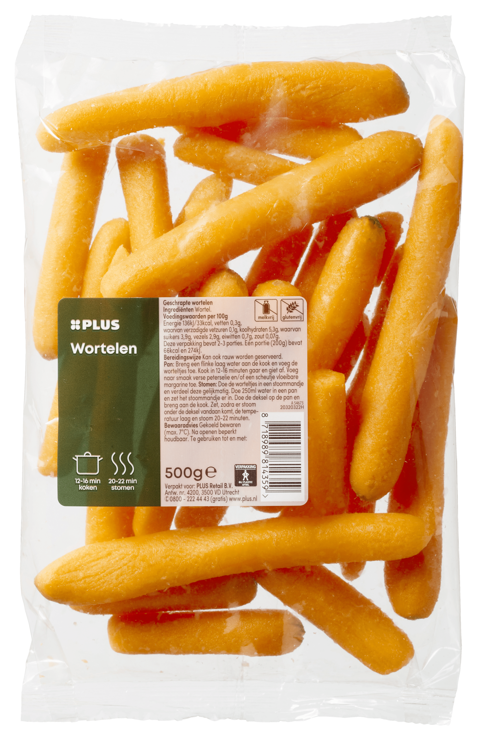 Geniet van de heerlijke, verse PLUS Worteltjes! Deze geschrapte wortelen zijn perfect voor een gezonde maaltijd en kunnen zowel gekookt als rauw geserveerd worden. Met een Nutri-Score A en een veganistisch keurmerk zijn ze een verantwoorde keuze. Ideaal voor een makkelijke bijgerecht of als toevoeging in salades.