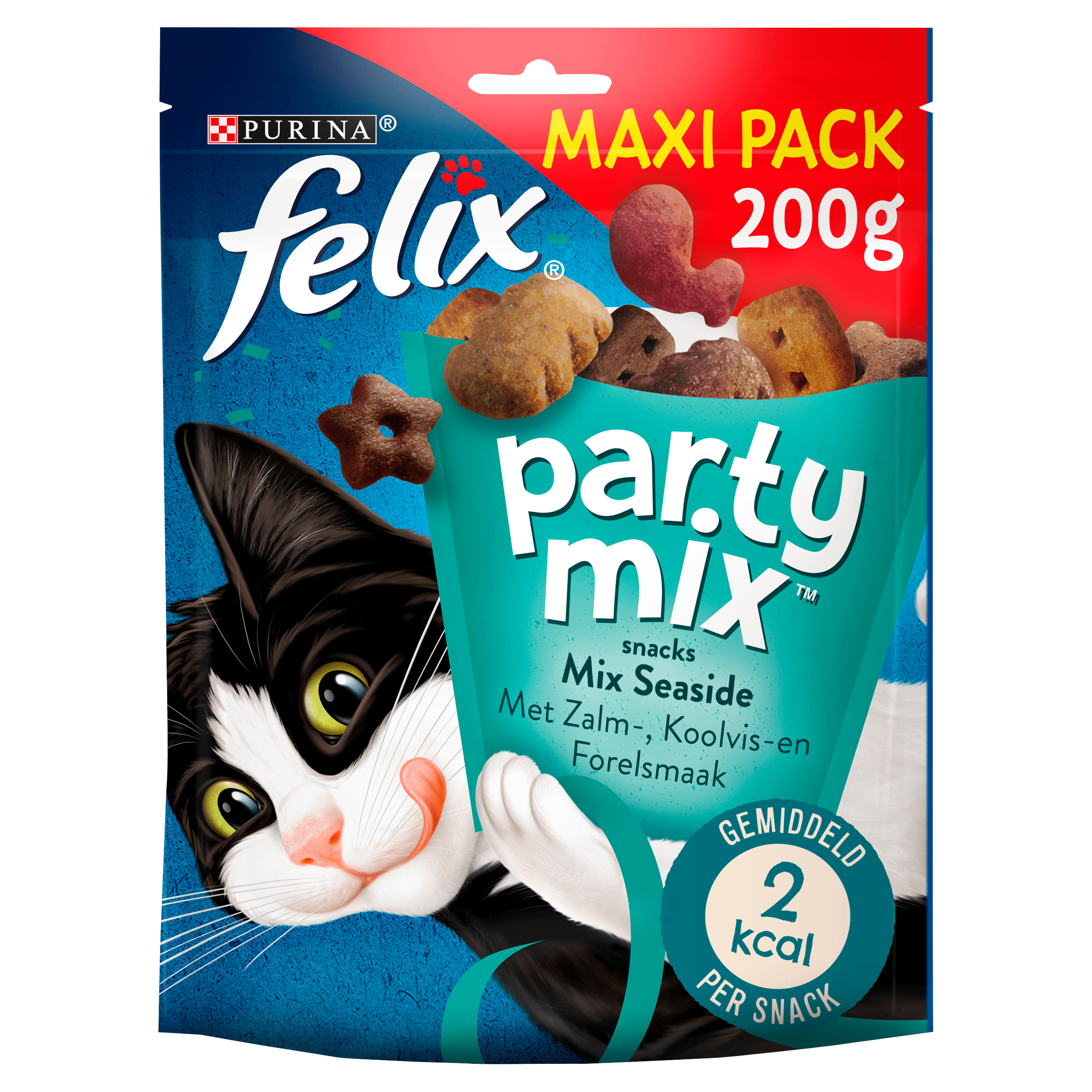 Felix® Party Mix Seaside is een onweerstaanbare mix van kattensnacks met verleidelijke aroma’s, heerlijke smaken en aantrekkelijke texturen. Deze snacks zijn speciaal ontwikkeld voor volwassen katten en leveren eiwitten, vitamines en Omega 6-vetzuren voor een gezond en gelukkig leven. Met smaken van zalm, koolvis en forel zijn deze snacks een waar feest voor je kat!