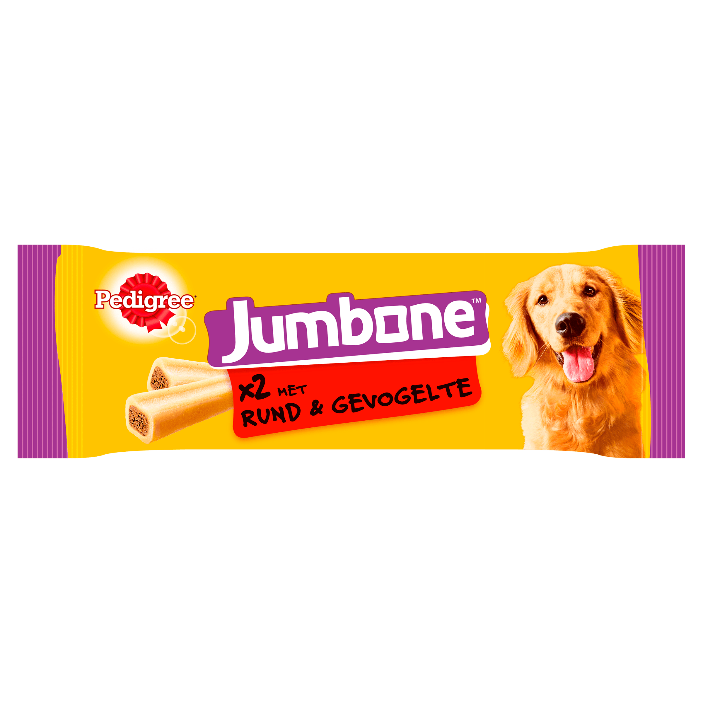 Pedigree Jumbone is een heerlijke, vlezige kauwstaaf speciaal ontworpen voor middelgrote honden van 10-25 kg. Deze snack heeft een hardere buitenkant en een smakelijke, vleesachtige binnenkant die je hond lang bezighoudt. Jumbone is een geweldig alternatief voor een bot, omdat het niet versplintert en veilig is voor je hond. Bovendien is het rijk aan omega 3, vitaminen en mineralen om de gezondheid van je hond te ondersteunen. Met minder dan 2% vet is het ook een verantwoorde keuze. Een ideale snack voor een heerlijke beloning!