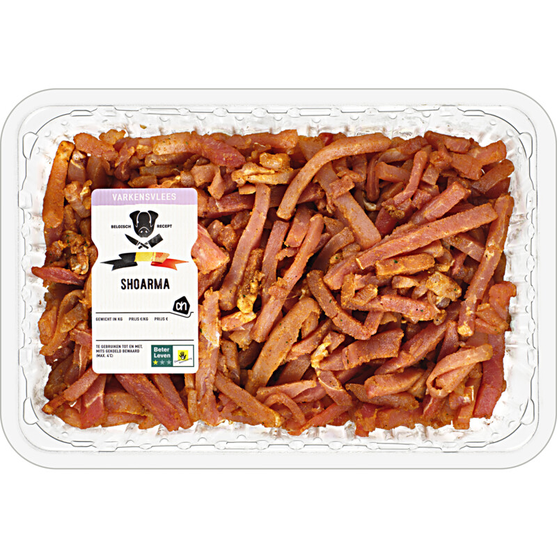 Geniet van malse reepjes varkensvlees gekruid met authentieke shoarmaspecerijen. Deze AH Varkensshoarma is perfect voor een snelle maaltijd en ideaal te combineren met een broodje, knoflooksaus en verse sla. Binnen slechts 5 minuten bereid in pan of wok, maak je een heerlijke maaltijd met toegevoegd wokgroente en rijst. Deze variant is zowel glutenvrij als lactosevrij en heeft het Beter Leven 1 Ster keurmerk, wat garant staat voor verantwoord vlees van hoge kwaliteit. Een smakelijke keuze voor elke liefhebber van gezonde fastfood!