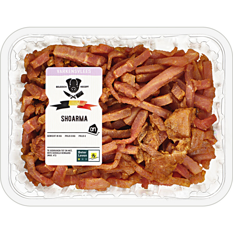 Geniet van de smaakvolle AH Varkensshoarma, gemaakt van malse reepjes varkensvlees, perfect gekruid met authentieke shoarmaspecerijen. Deze onweerstaanbare shoarma is ideaal voor een snelle maaltijd. Serveer het met een vers broodje, knapperige sla en romige knoflooksaus, of bereid het in een pan of wok met kleurrijke groenten en rijst voor een complete maaltijd. Dit product heeft een Beter Leven 1 Ster Keurmerk, wat betekent dat het vlees afkomstig is uit betere omstandigheden. Kortom, een lekker en verantwoord keuze voor elke gelegenheid!